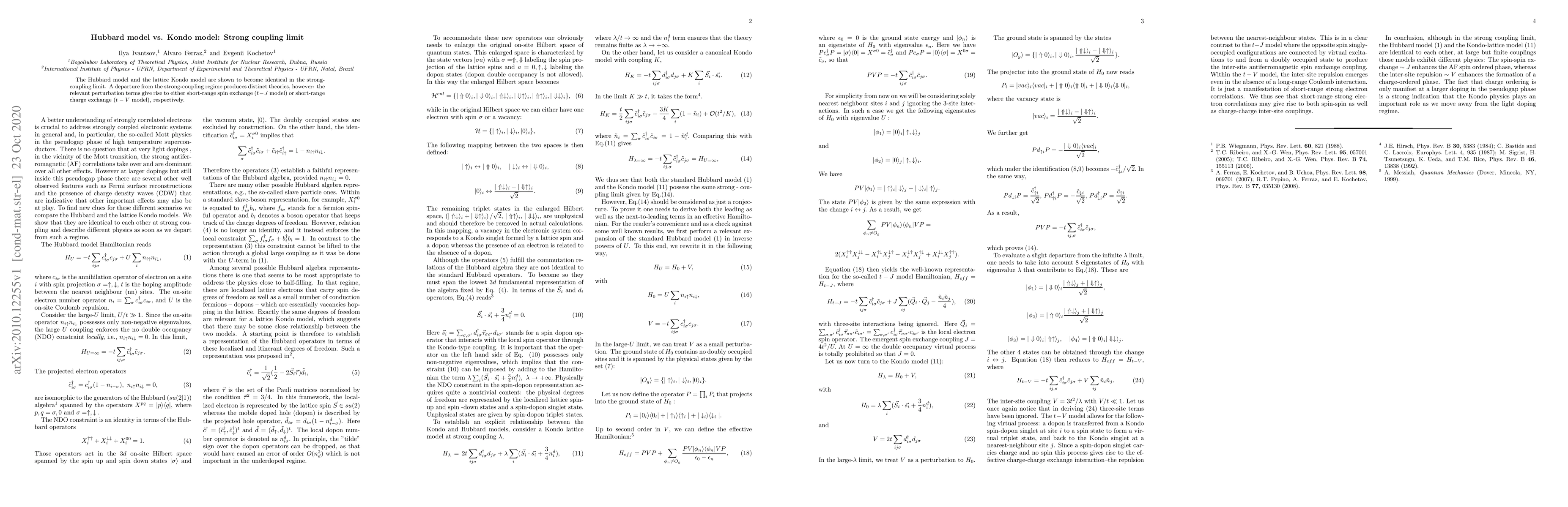 The Hubbard model and the lattice Kondo model are shown to become identical in the strong-coupling limit. A departure from the strong-coupling regime produces distinct theories, however: the relevant perturbation terms give rise to either short-range spin exchange $(t-J$ model) or short-range charge exchange ($t-V$ model), respectively.