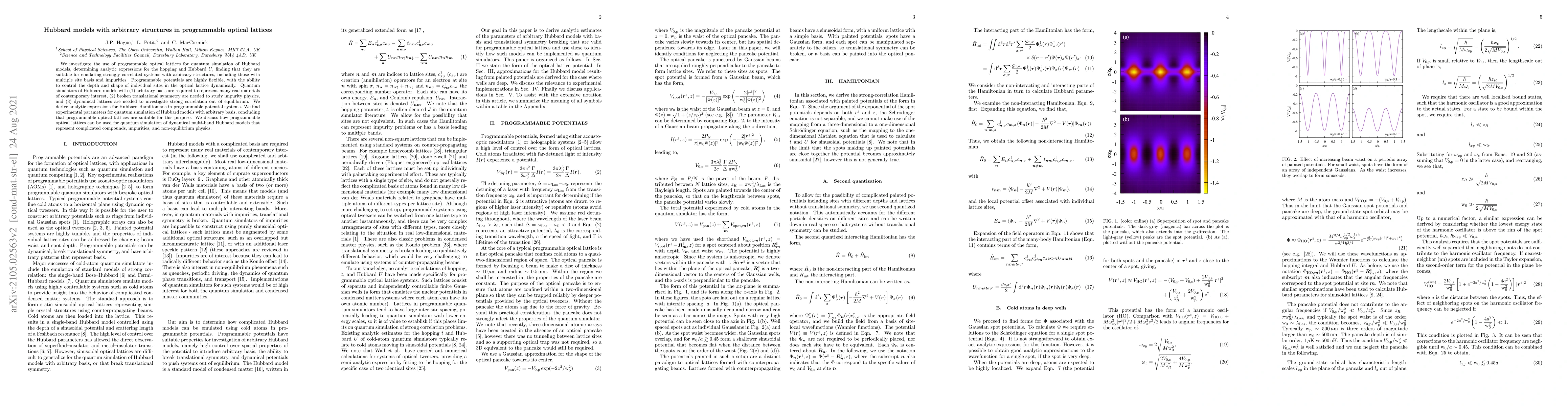 This paper explores the use of programmable optical lattices for simulating Hubbard models, deriving analytic expressions for hopping and interaction terms. It concludes that these lattices are highly adaptable for emulating strongly correlated systems with complex structures, including multiple site bases and impurities.