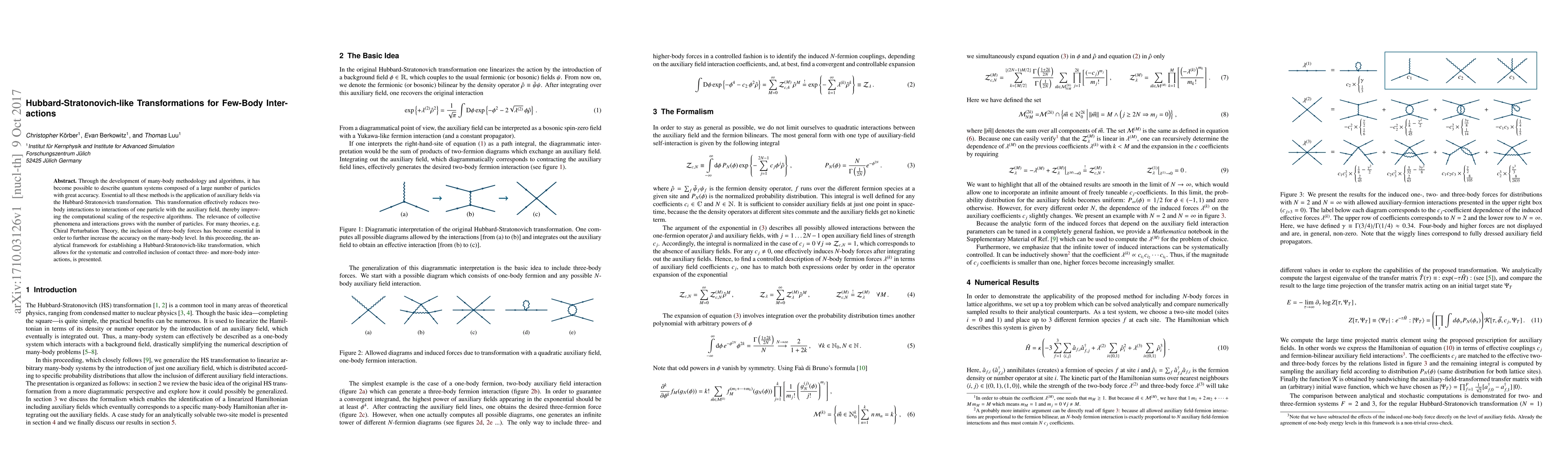 This paper presents a new analytical framework for incorporating Hubbard-Stratonovich-like transformations to systematically include contact three- and higher-body interactions in many-body quantum systems, improving computational efficiency and accuracy.