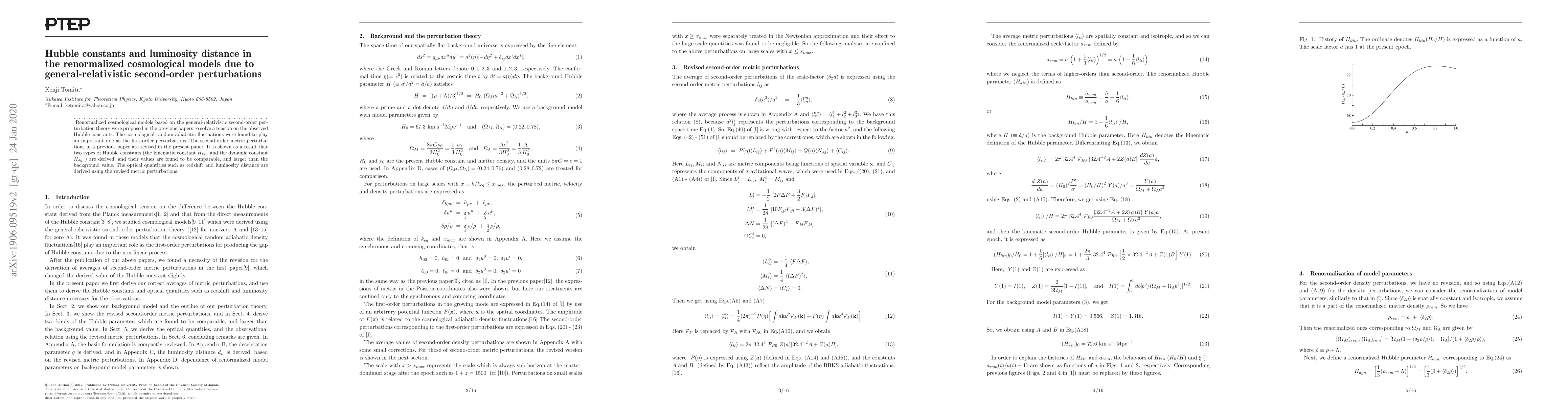 This paper revises renormalized cosmological models based on general-relativistic second-order perturbations to resolve discrepancies in observed Hubble constants. It introduces two types of Hubble constants, H_kin and H_dyn, which are larger than the background value and comparable to each other, and derives optical quantities like redshift and luminosity distance using the updated metric perturbations.
