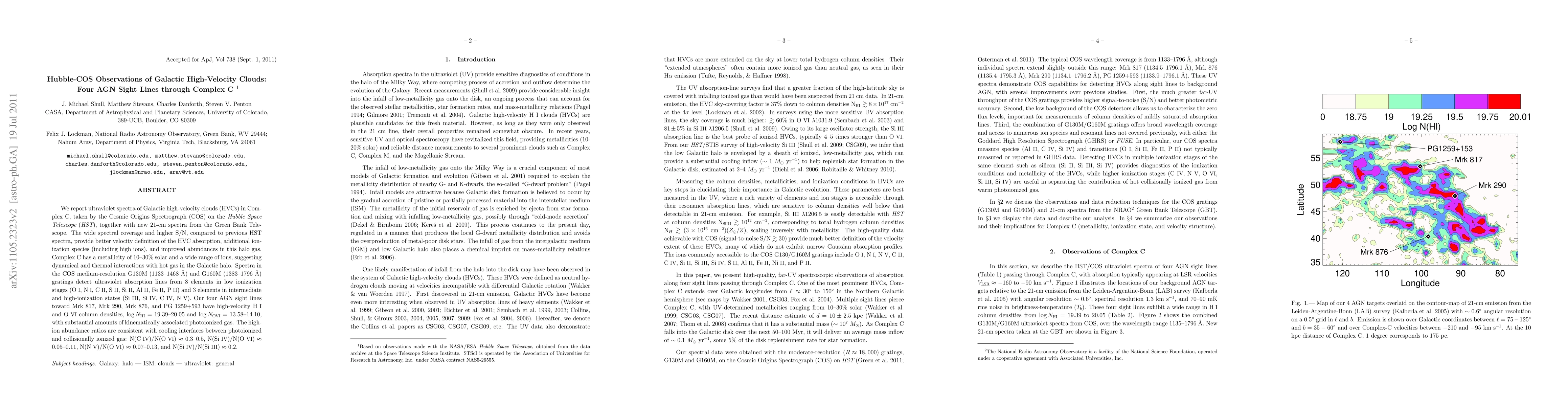 This paper reports on ultraviolet spectra of Galactic high-velocity clouds in Complex C using the Hubble Space Telescope's Cosmic Origins Spectrograph, revealing high-ionization states and high-velocity H I and O VI column densities in four AGN sight lines. The findings suggest interactions with hot gas in the Galactic halo and support cooling interfaces between photoionized and collisionally ionized gas.