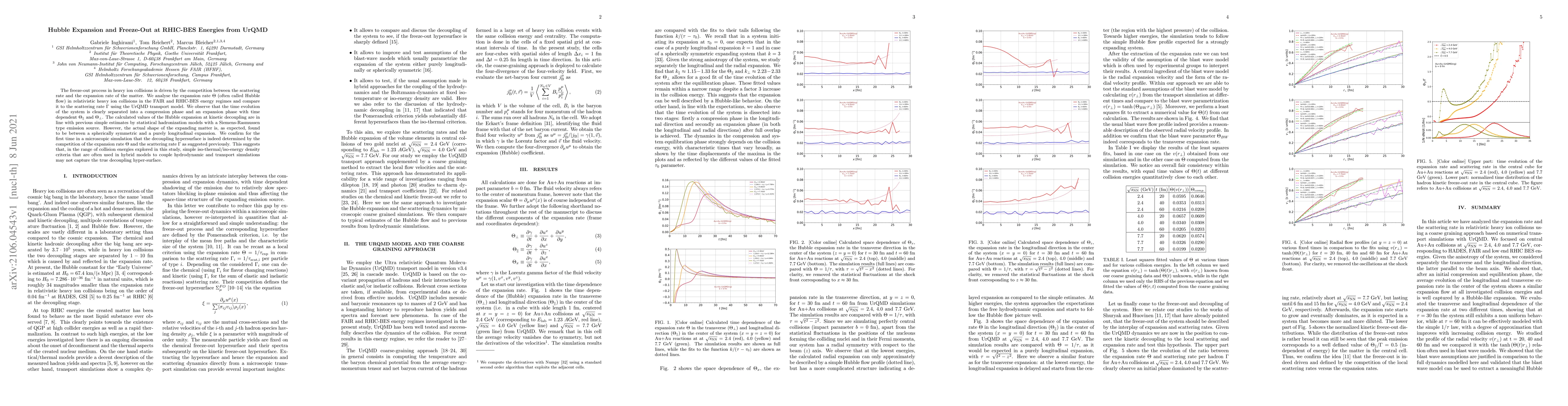 The freeze-out process in heavy ion collisions is driven by the competition between the scattering rate and the expansion rate of the matter. We analyse the expansion rate $\Theta$ (often called Hubble flow) in relativistic heavy ion collisions in the FAIR and RHIC-BES energy regimes and compare it to the scattering rate $\Gamma$ using the UrQMD transport model. We observe that the time evolution of the system is clearly separated into a compression phase and an expansion phase with time dependent $\Theta_\parallel$ and $\Theta_\perp$. The calculated values of the Hubble expansion at kinetic decoupling are in line with previous simple estimates by statistical hadronization models with a Siemens-Rasmussen type emission source. However, the actual shape of the expanding matter is, as expected, found to be between a spherically symmetric and a purely longitudinal expansion. We confirm for the first time in a microscopic simulation that the decoupling hypersurface is indeed determined by the competition of the expansion rate $\Theta$ and the scattering rate $\Gamma$ as suggested previously. This suggests that, in the range of collision energies explored in this study, simple iso-thermal/iso-energy density criteria that are often used in hybrid models to couple hydrodynamic and transport simulations may not capture the true decoupling hyper-surface.