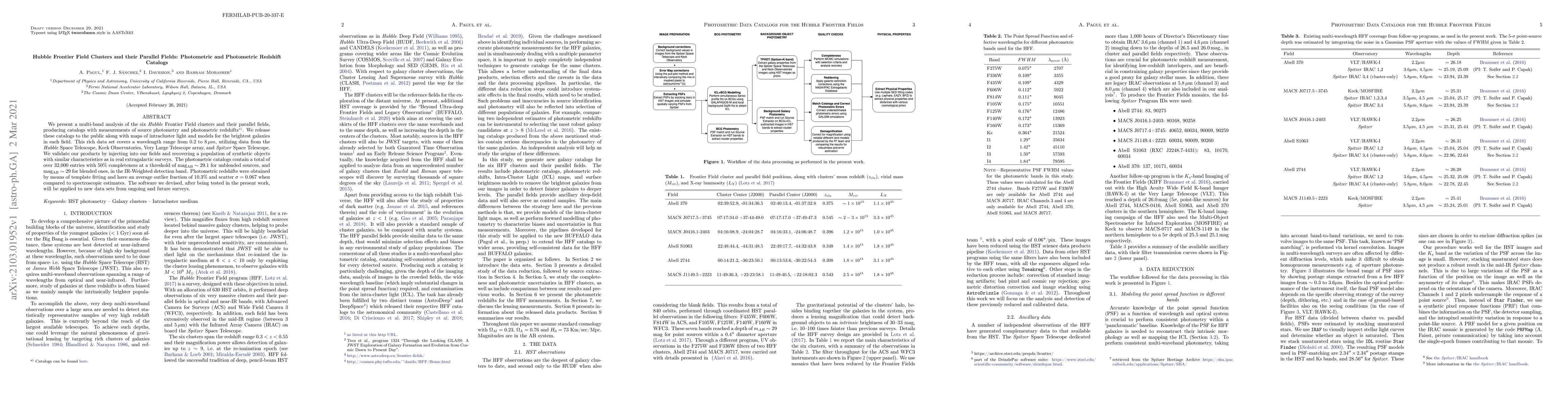 We present a multi-band analysis of the six Hubble Frontier Field clusters and their parallel fields, producing catalogs with measurements of source photometry and photometric redshifts. We release these catalogs to the public along with maps of intracluster light and models for the brightest galaxies in each field. This rich data set covers a wavelength range from 0.2 to 8 $\mu m$, utilizing data from the Hubble Space Telescope, Keck Observatories, Very Large Telescope array, and Spitzer Space Telescope. We validate our products by injecting into our fields and recovering a population of synthetic objects with similar characteristics as in real extragalactic surveys. The photometric catalogs contain a total of over 32,000 entries with 50\% completeness at a threshold of $\mathrm{mag_{AB}}\sim 29.1$ for unblended sources, and $\mathrm{mag_{AB}}\sim 29$ for blended ones, in the IR-Weighted detection band. Photometric redshifts were obtained by means of template fitting and have an average outlier fraction of 10.3\% and scatter $\sigma = 0.067$ when compared to spectroscopic estimates. The software we devised, after being tested in the present work, will be applied to new data sets from ongoing and future surveys.