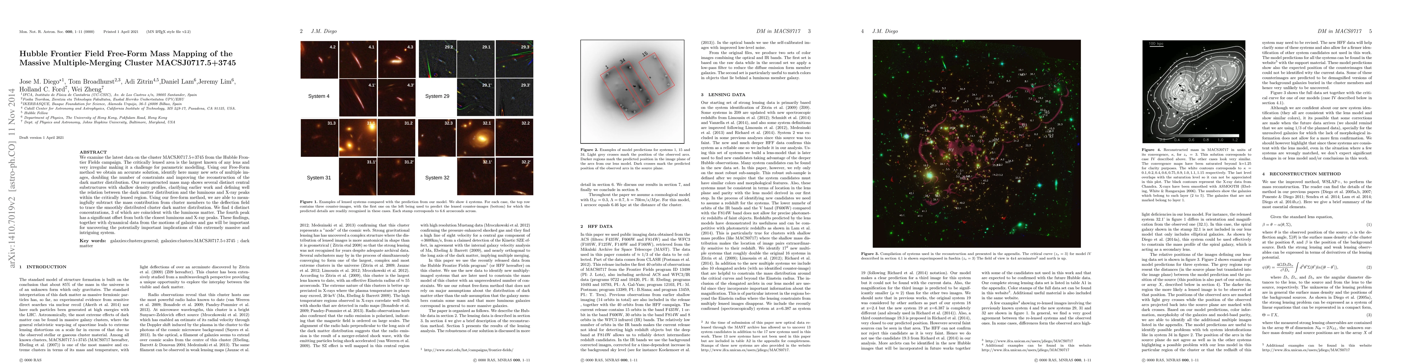 We examine the latest data on the cluster MACSJ0717.5+3745 from the Hubble Frontier Fields campaign. The critically lensed area is the largest known of any lens and very irregular making it a challenge for parametric modelling. Using our Free-Form method we obtain an accurate solution, identify here many new sets of multiple images, doubling the number of constraints and improving the reconstruction of the dark matter distribution. Our reconstructed mass map shows several distinct central substructures with shallow density profiles, clarifying earlier work and defining well the relation between the dark matter distribution and the luminous and X-ray peaks within the critically lensed region. Using our free-form method, we are able to meaningfully subtract the mass contribution from cluster members to the deflection field to trace the smoothly distributed cluster dark matter distribution. We find 4 distinct concentrations, 3 of which are coincident with the luminous matter. The fourth peak has a significant offset from both the closest luminous and X-ray peaks. These findings, together with dynamical data from the motions of galaxies and gas will be important for uncovering the potentially important implications of this extremely massive and intriguing system.