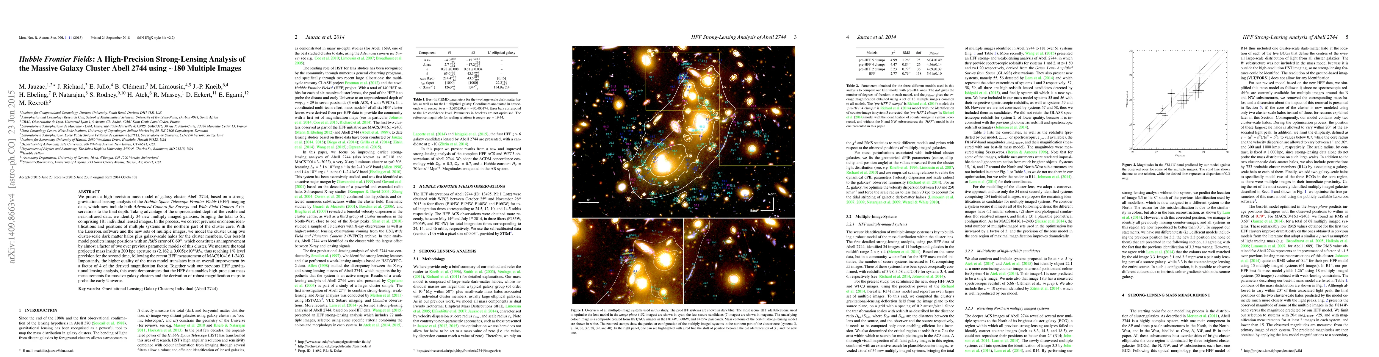 This paper presents a high-precision mass model of galaxy cluster Abell 2744 using Hubble Space Telescope Frontier Fields data, identifying 34 new multiply imaged galaxies. The improved model, using Lenstool software, achieves a significant reduction in RMS error and provides a total projected mass measurement with 1% precision, enhancing the derived magnification factor by a factor of 4.