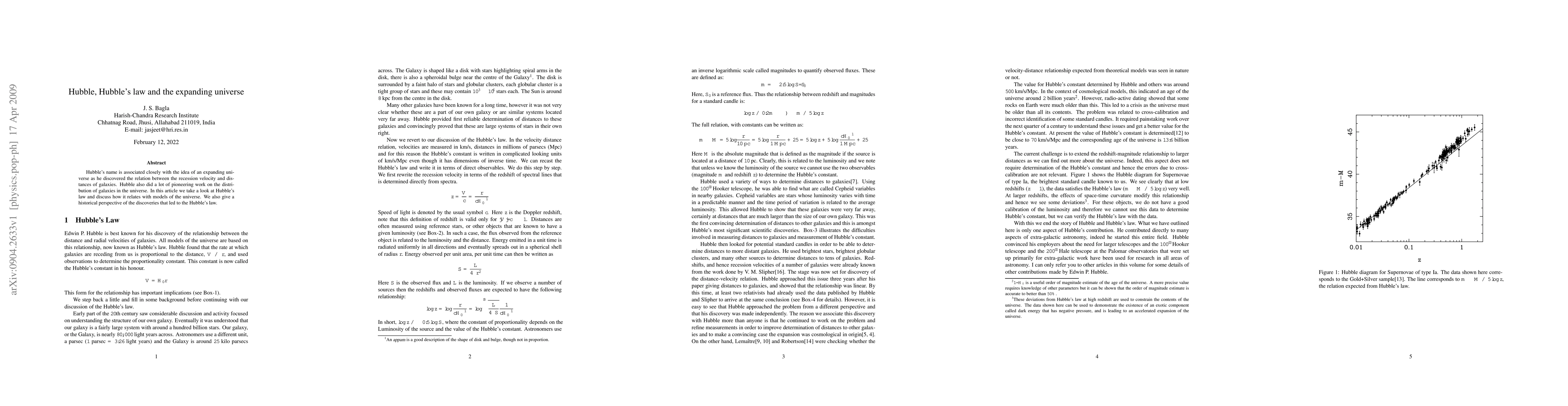 This paper explores Hubble's law, which describes the relationship between the recession velocity and distance of galaxies, and discusses its implications for models of the universe. It also provides a historical overview of the discoveries that led to this fundamental understanding of the universe's expansion.