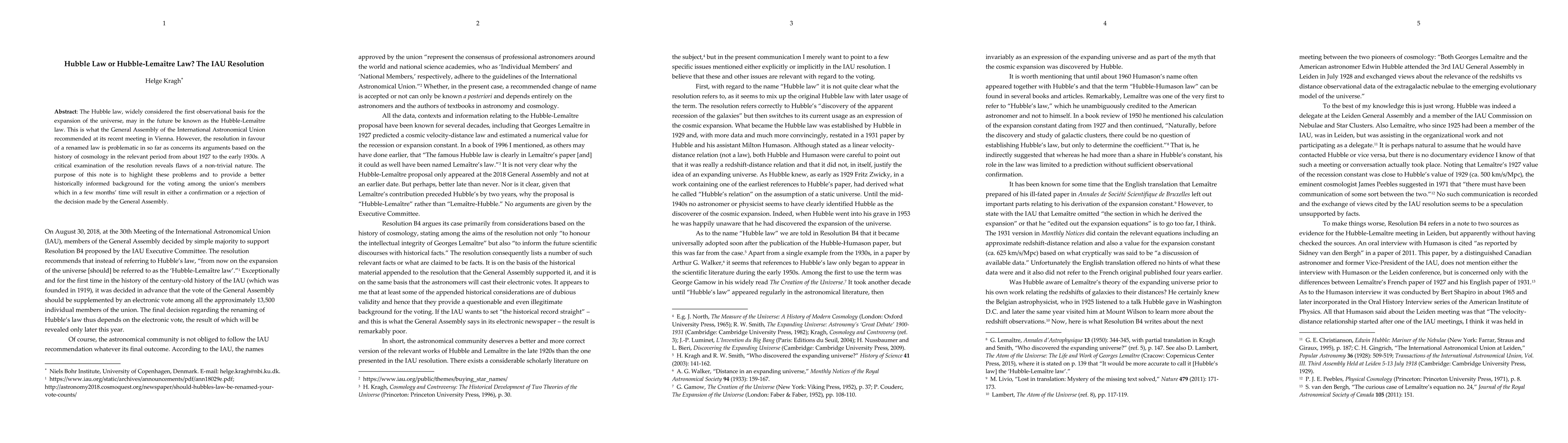 The International Astronomical Union proposed renaming the Hubble law to the Hubble-Lemaître law to recognize contributions from Georges Lemaître, but this resolution has been criticized for historical inaccuracies. This paper aims to highlight these issues and provide a more accurate historical context for the decision.