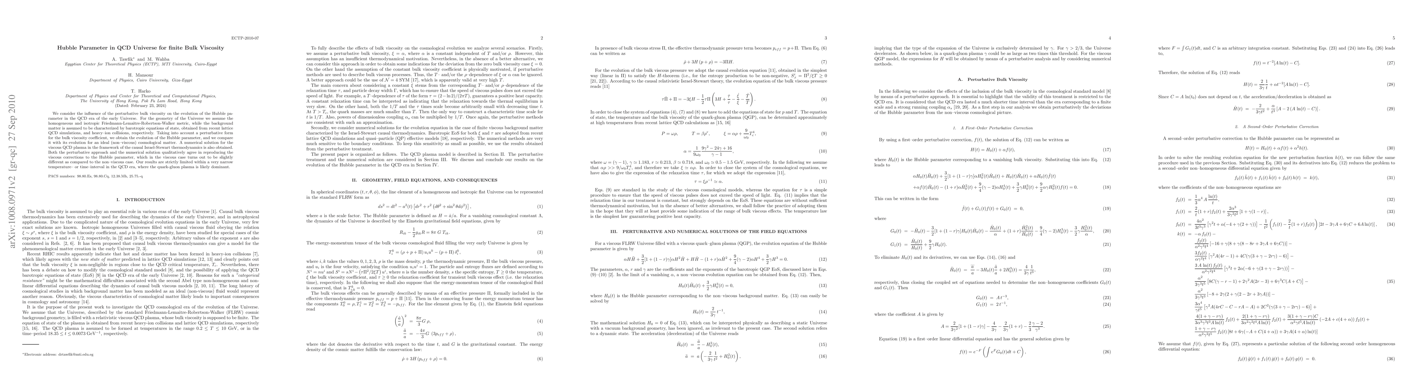This paper investigates the impact of perturbative bulk viscosity on the Hubble parameter's evolution during the QCD era of the early Universe, using a Friedmann-Lemaitre-Robertson-Walker metric and barotropic equations of state derived from lattice QCD simulations. Both analytical and numerical approaches show that bulk viscosity slightly alters the Hubble parameter's evolution compared to an ideal, non-viscous scenario.