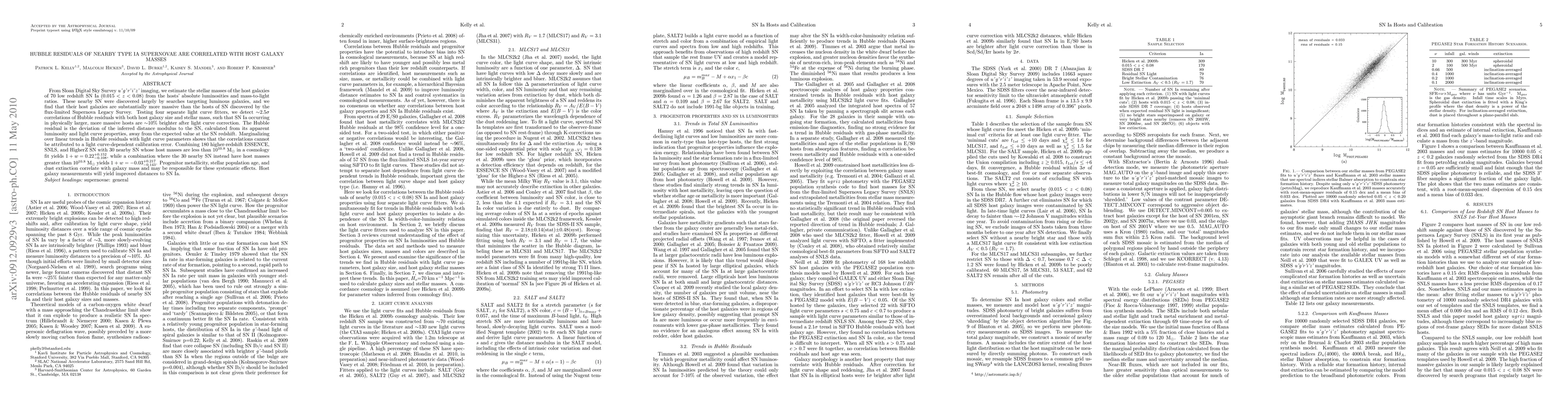 Nearby Type Ia supernovae have host galaxy masses that correlate with their brightness, suggesting a systematic effect in distance measurements. This correlation could improve distance estimates to these events.