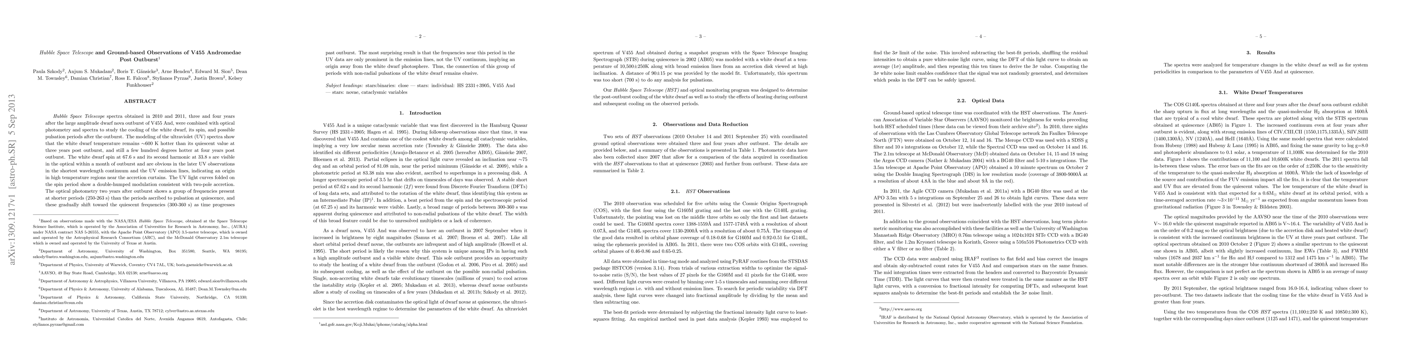 The study of V455 Andromedae after a large amplitude dwarf nova outburst reveals that its white dwarf temperature remains hot for several years, with visible pulsation periods and possible accretion patterns, while non-radial pulsations remain elusive.