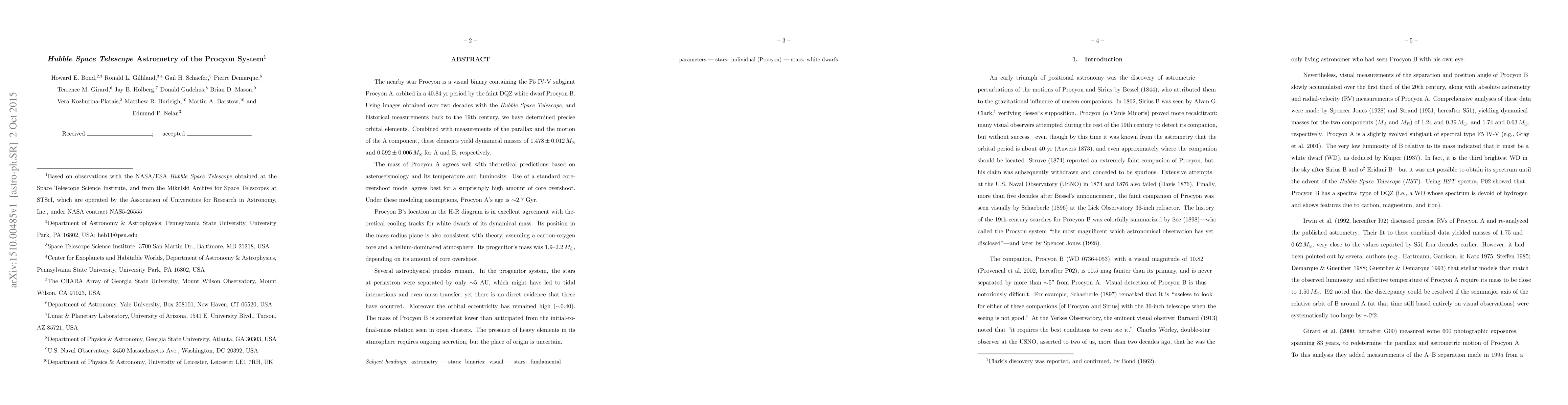 Researchers used Hubble Space Telescope images to determine precise orbital elements for Procyon, a nearby star system, yielding dynamical masses of 1.478 Msun and 0.592 Msun for the two components.
