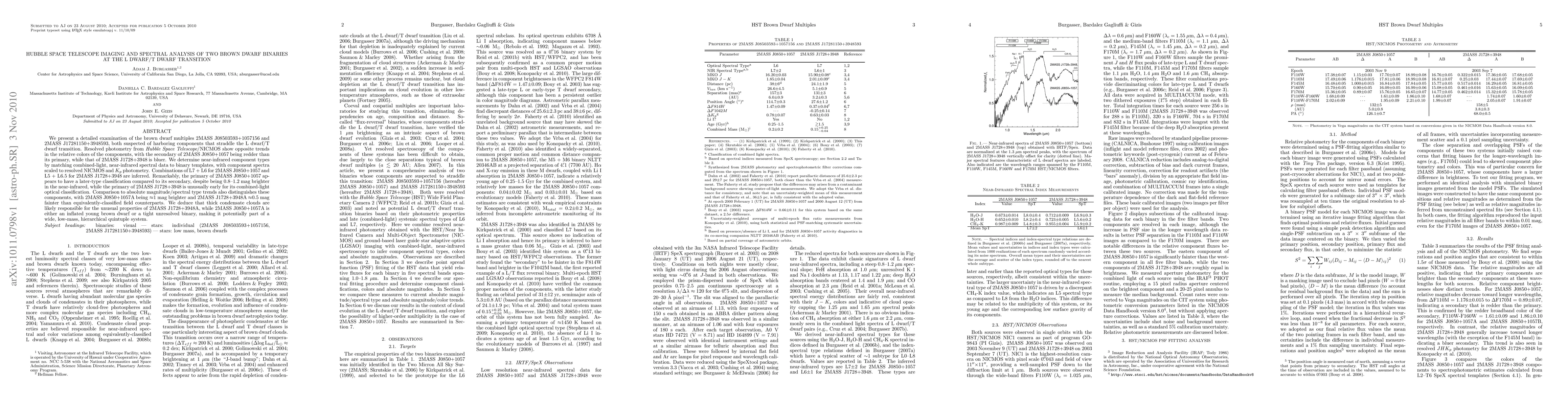 This study uses Hubble Space Telescope imaging to analyze two brown dwarf binaries, finding that their components straddle the L/T transition. The secondary of 2MASS J0850+1057 is redder, while the secondary of 2MASS J1728+3948 is bluer, suggesting different atmospheric properties and cloud compositions.