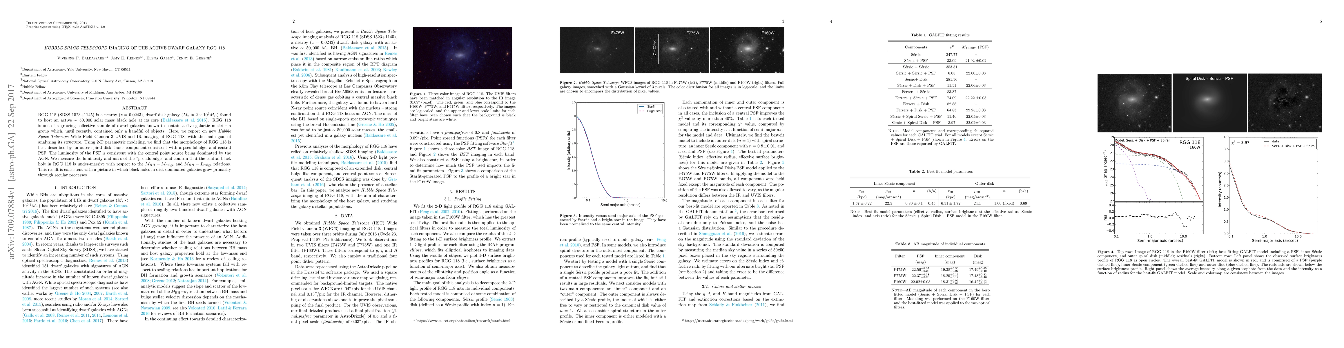 RGG 118 (SDSS 1523+1145) is a nearby ($z=0.0243$), dwarf disk galaxy ($M_{\ast}\approx2\times10^{9} M_{\odot}$) found to host an active $\sim50,000$ solar mass black hole at its core (Baldassare et al. 2015). RGG 118 is one of a growing collective sample of dwarf galaxies known to contain active galactic nuclei -- a group which, until recently, contained only a handful of objects. Here, we report on new \textit{Hubble Space Telescope} Wide Field Camera 3 UVIS and IR imaging of RGG 118, with the main goal of analyzing its structure. Using 2-D parametric modeling, we find that the morphology of RGG 118 is best described by an outer spiral disk, inner component consistent with a pseudobulge, and central PSF. The luminosity of the PSF is consistent with the central point source being dominated by the AGN. We measure the luminosity and mass of the "pseudobulge" and confirm that the central black hole in RGG 118 is under-massive with respect to the $M_{BH}-M_{\rm bulge}$ and $M_{BH}-L_{\rm bulge}$ relations. This result is consistent with a picture in which black holes in disk-dominated galaxies grow primarily through secular processes.