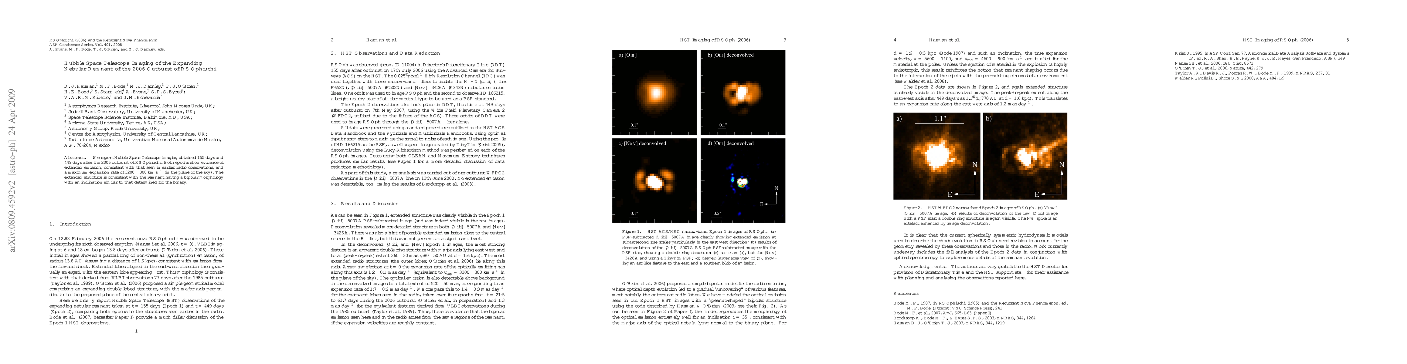 This study uses Hubble Space Telescope imaging to observe the nebular remnant of RS Ophiuchi's 2006 outburst, revealing extended emission and a maximum expansion rate of $3200\pm300$ km s$^{-1}$. The nebula exhibits a bipolar morphology, aligning with the binary system's inclination.