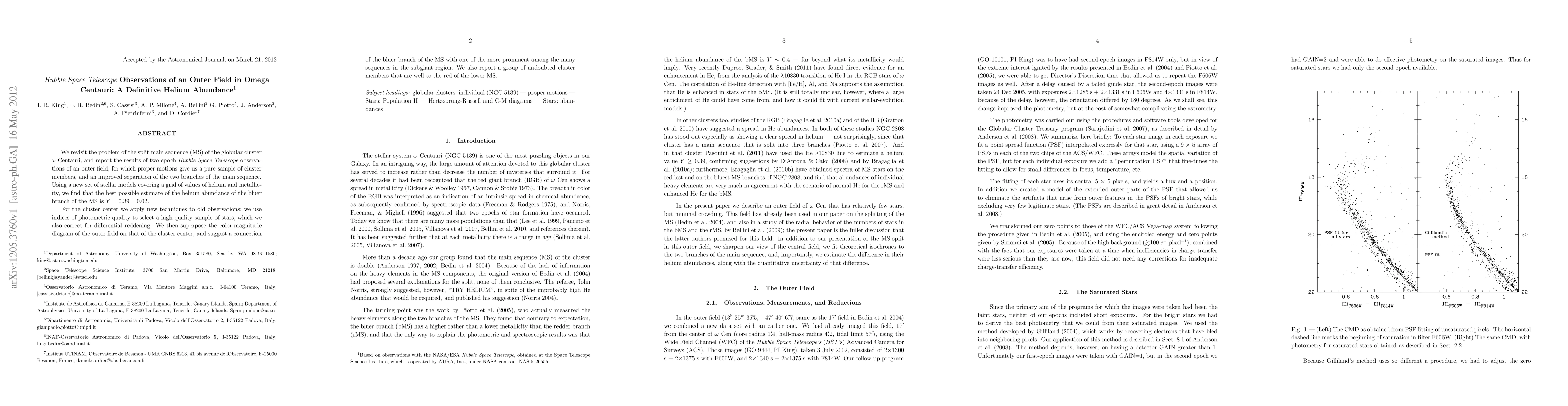 This study uses Hubble Space Telescope observations to determine the helium abundance in Omega Centauri, finding Y = 0.39 +/- 0.02 for the bluer main sequence branch, and suggests a connection between this branch and a prominent subgiant sequence. The analysis also identifies a group of red lower main sequence stars.