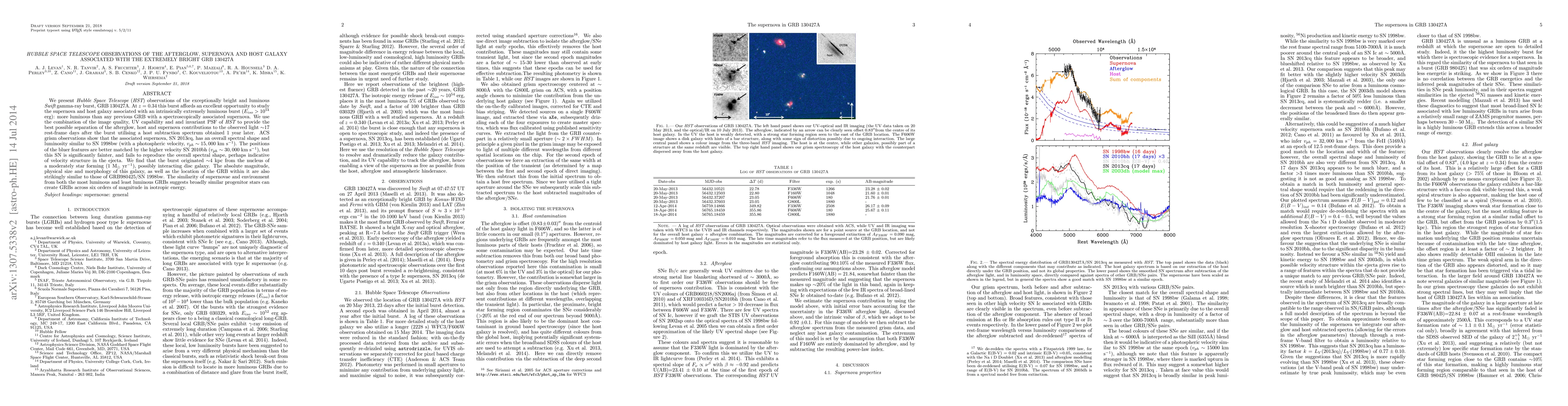 We present Hubble Space Telescope (HST) observations of the exceptionally bright and luminous Swift gamma-ray burst, GRB 130427A. At z=0.34 this burst affords an excellent opportunity to study the supernova and host galaxy associated with an intrinsically extremely luminous burst ($E_{iso} >10^{54}$ erg): more luminous than any previous GRB with a spectroscopically associated supernova. We use the combination of the image quality, UV capability and and invariant PSF of HST to provide the best possible separation of the afterglow, host and supernova contributions to the observed light ~17 rest-frame days after the burst utilising a host subtraction spectrum obtained 1 year later. Advanced Camera for Surveys (ACS) grism observations show that the associated supernova, SN~2013cq, has an overall spectral shape and luminosity similar to SN 1998bw (with a photospheric velocity, v$_{ph}$ ~15,000 km/s). The positions of the bluer features are better matched by the higher velocity SN~2010bh (v$_{ph}$ ~ 30,000 km/s), but SN 2010bh is significantly fainter, and fails to reproduce the overall spectral shape, perhaps indicative of velocity structure in the ejecta. We find that the burst originated ~4 kpc from the nucleus of a moderately star forming (1 Msol/yr), possibly interacting disc galaxy. The absolute magnitude, physical size and morphology of this galaxy, as well as the location of the GRB within it are also strikingly similar to those of GRB980425/SN 1998bw. The similarity of supernovae and environment from both the most luminous and least luminous GRBs suggests broadly similar progenitor stars can create GRBs across six orders of magnitude in isotropic energy.
