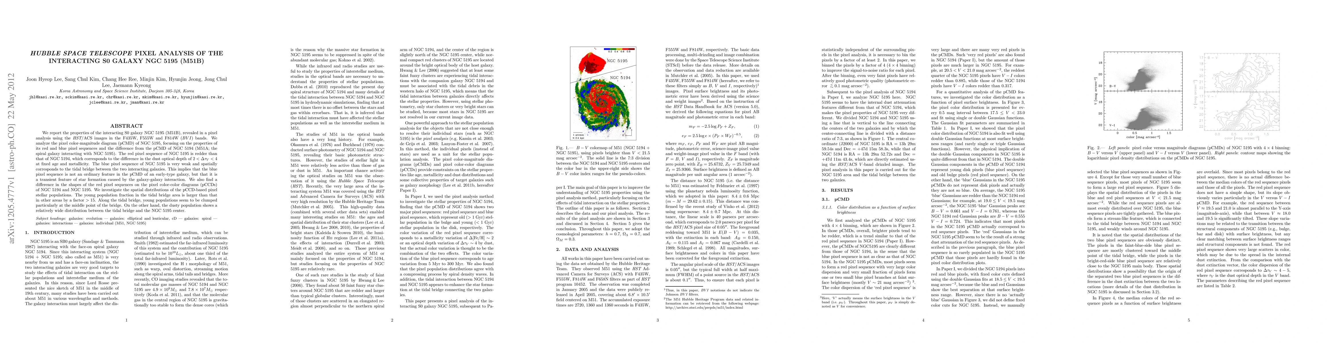 Researchers analyzed the Hubble Space Telescope images of galaxy NGC 5195 to reveal its properties after interacting with M51A, finding a redder red pixel sequence and a weak blue pixel sequence that indicates transient star formation caused by the interaction.