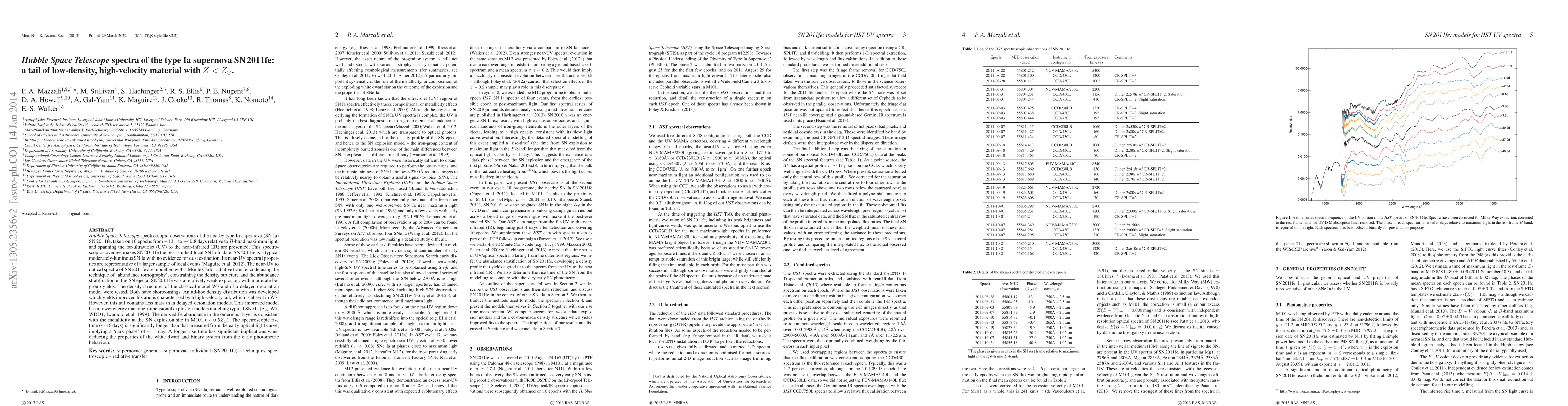 Hubble Space Telescope spectroscopic observations of the nearby type Ia supernova (SN Ia) SN2011fe, taken on 10 epochs from -13.1 to +40.8 days relative to B-band maximum light, and spanning the far-ultraviolet (UV) to the near-infrared (IR) are presented. This spectroscopic coverage makes SN2011fe the best-studied local SN Ia to date. SN2011fe is a typical moderately-luminous SN Ia with no evidence for dust extinction. Its near-UV spectral properties are representative of a larger sample of local events (Maguire et al. 2012). The near-UV to optical spectra of SN2011fe are modelled with a Monte Carlo radiative transfer code using the technique of 'abundance tomography', constraining the density structure and the abundance stratification in the SN ejecta. SN2011fe was a relatively weak explosion, with moderate Fe-group yields. The density structures of the classical model W7 and of a delayed detonation model were tested. Both have shortcomings. An ad-hoc density distribution was developed which yields improved fits and is characterised by a high-velocity tail, which is absent in W7. However, this tail contains less mass than delayed detonation models. This improved model has a lower energy than one-dimensional explosion models matching typical SNe Ia (e.g. W7, WDD1). The derived Fe abundance in the outermost layer is consistent with the metallicity at the SN explosion site in M101 (~0.5 Zsolar). The spectroscopic rise time (~19 days) is significantly longer than that measured from the early optical light curve, implying a 'dark phase' of ~1 day. A longer rise time has significant implications when deducing the properties of the white dwarf and binary system from the early photometric behaviour.