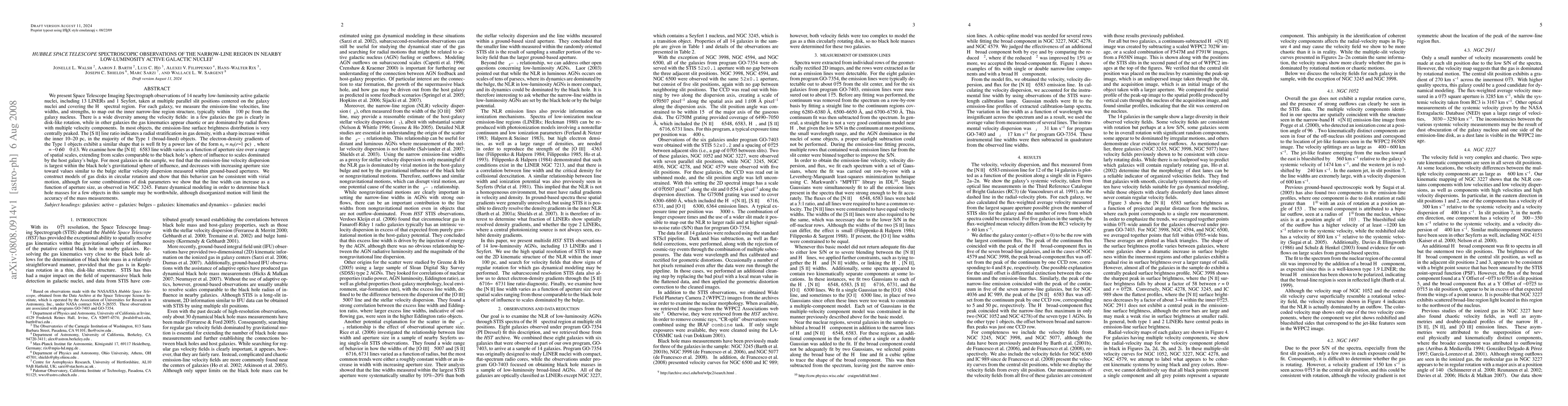 This paper reports Hubble Space Telescope observations of 14 nearby low-luminosity active galactic nuclei, revealing diverse gas kinematics and a radial stratification in gas density. Emission-line velocity dispersion is largest near the black hole and decreases with scale, suggesting potential for future black hole mass determinations, though chaotic motion may limit accuracy.