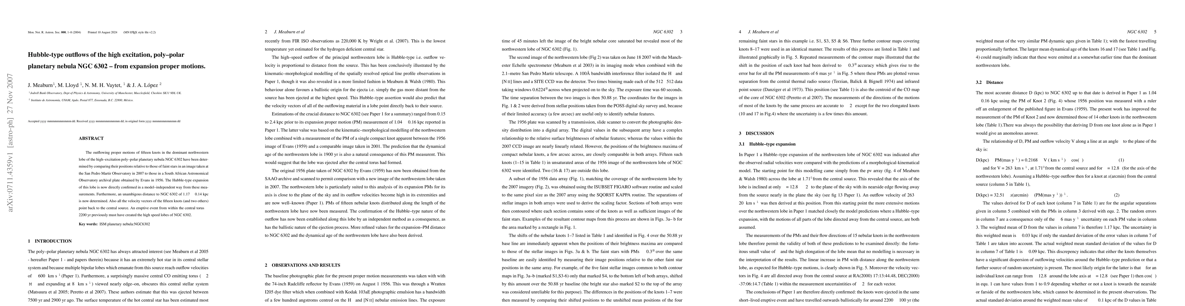 The expansion of NGC 6302's northwestern lobe has been confirmed as Hubble-type, with knots moving away from the central source at high speeds, indicating an eruptive event around 2200 years ago.