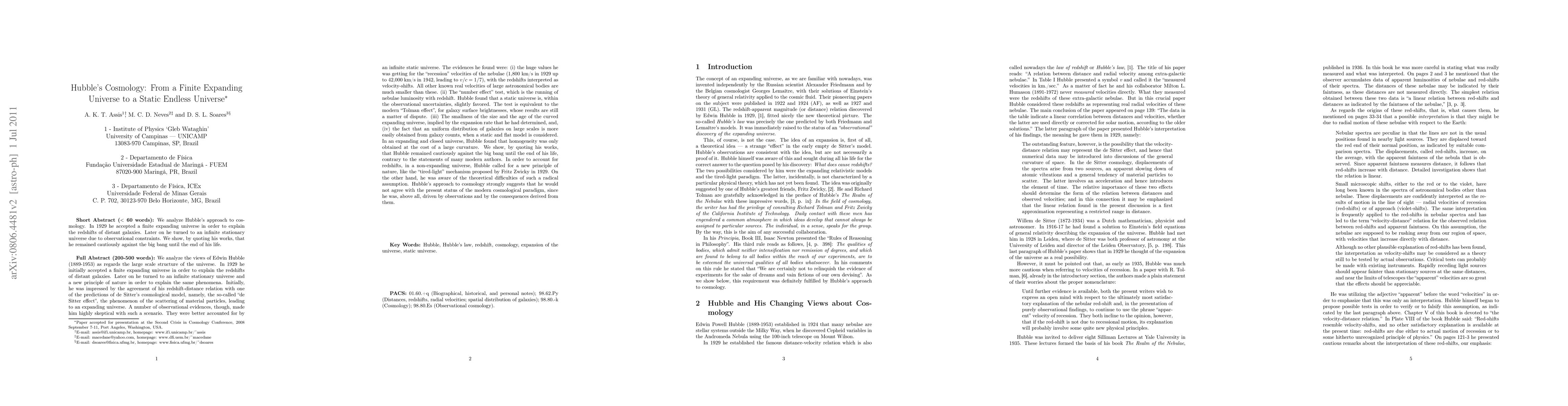 Summary: This paper explores Hubble's evolving cosmology, from his initial acceptance of a finite expanding universe in 1929 to his later shift towards an infinite stationary universe due to observational constraints, while highlighting his persistent skepticism towards the big bang theory.