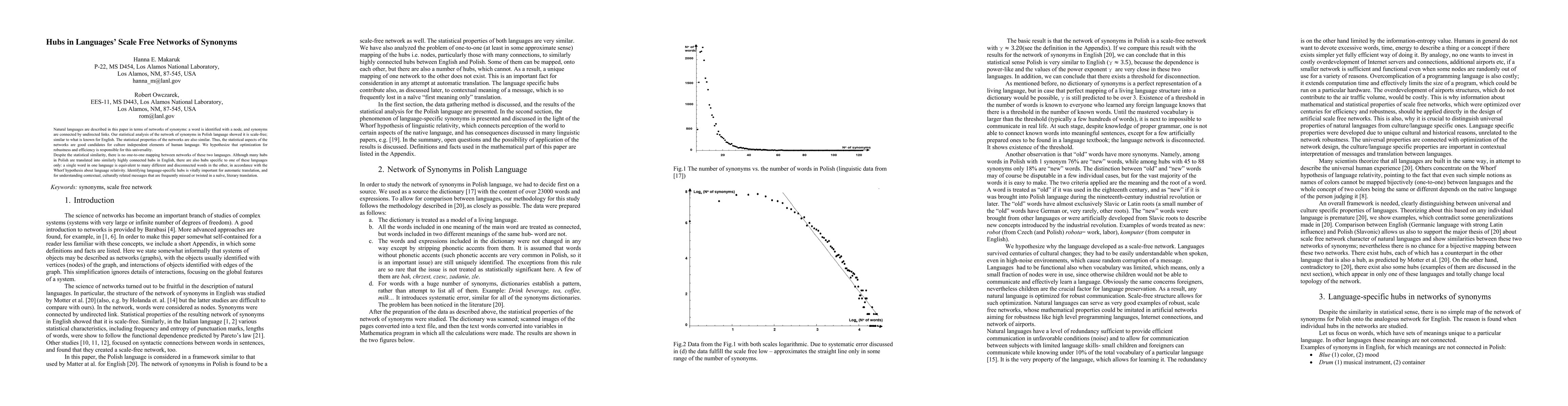 This paper analyzes the network of synonyms in the Polish language, revealing a scale-free structure similar to English. The study suggests that these statistical properties may represent universal elements of human language, optimized for robustness and efficiency, though language-specific hubs highlight cultural differences and challenges in automatic translation.