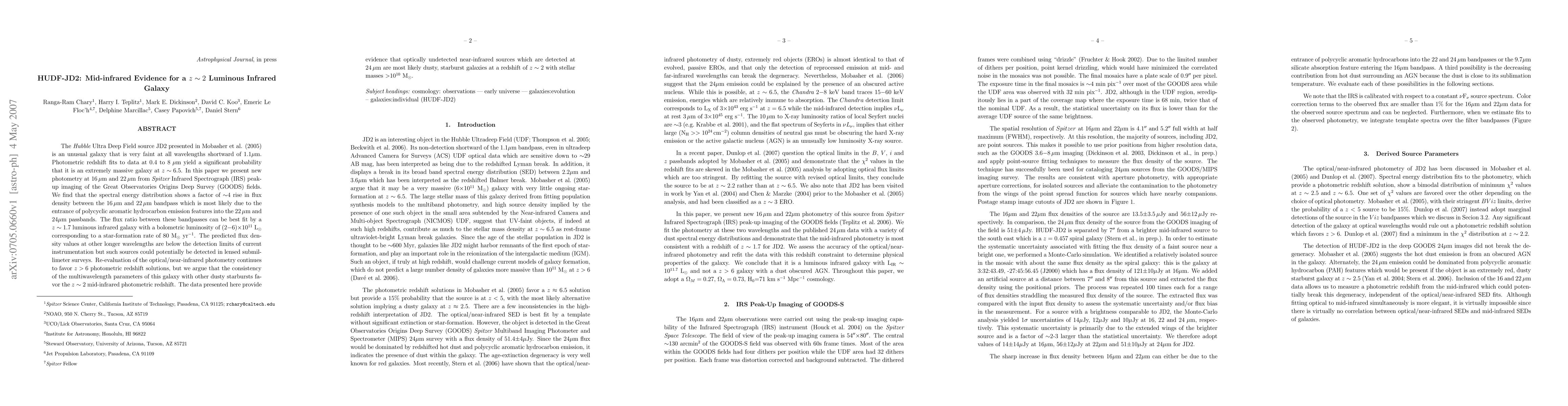 This paper presents new mid-infrared data for the Hubble Ultra Deep Field source JD2, indicating a significant rise in flux density due to polycyclic aromatic hydrocarbon emission features, suggesting it is a luminous infrared galaxy at z~1.7 rather than the previously proposed z~6.5. The findings support the galaxy as a dusty starburst at z~2.