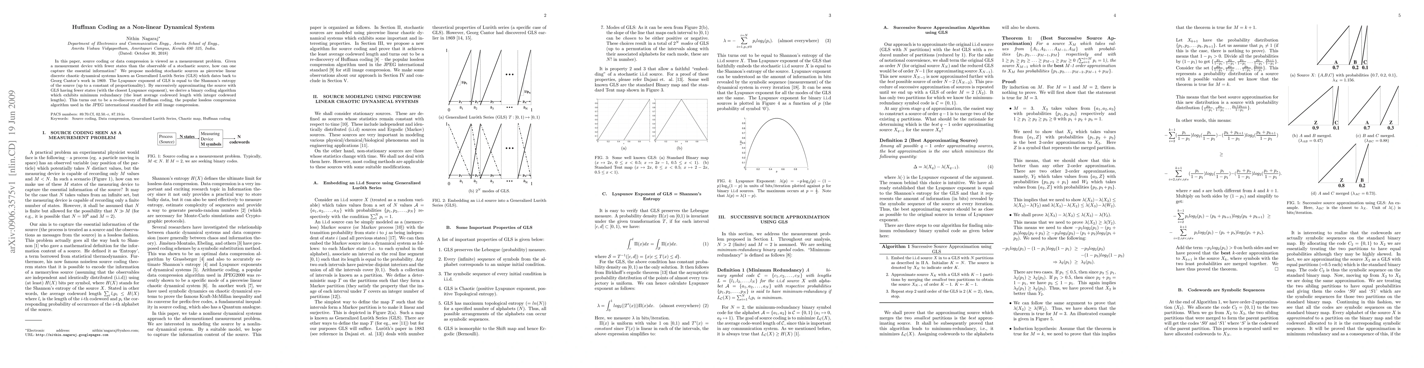 In this paper, source coding or data compression is viewed as a measurement problem. Given a measurement device with fewer states than the observable of a stochastic source, how can one capture the essential information? We propose modeling stochastic sources as piecewise linear discrete chaotic dynamical systems known as Generalized Lur\"{o}th Series (GLS) which dates back to Georg Cantor's work in 1869. The Lyapunov exponent of GLS is equal to the Shannon's entropy of the source (up to a constant of proportionality). By successively approximating the source with GLS having fewer states (with the closest Lyapunov exponent), we derive a binary coding algorithm which exhibits minimum redundancy (the least average codeword length with integer codeword lengths). This turns out to be a re-discovery of Huffman coding, the popular lossless compression algorithm used in the JPEG international standard for still image compression.