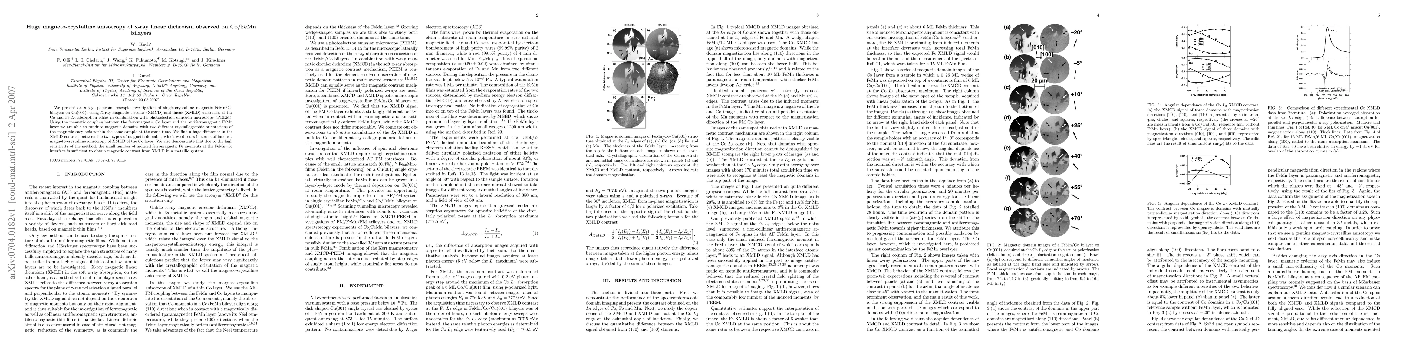 This paper investigates the x-ray linear dichroism (XMLD) in Co/FeMn bilayers, revealing significant magneto-crystalline anisotropy. The study uses XMCD and XMLD to observe magnetic domains with different crystallographic orientations, demonstrating the method's sensitivity to small ferromagnetic moments at the interface.
