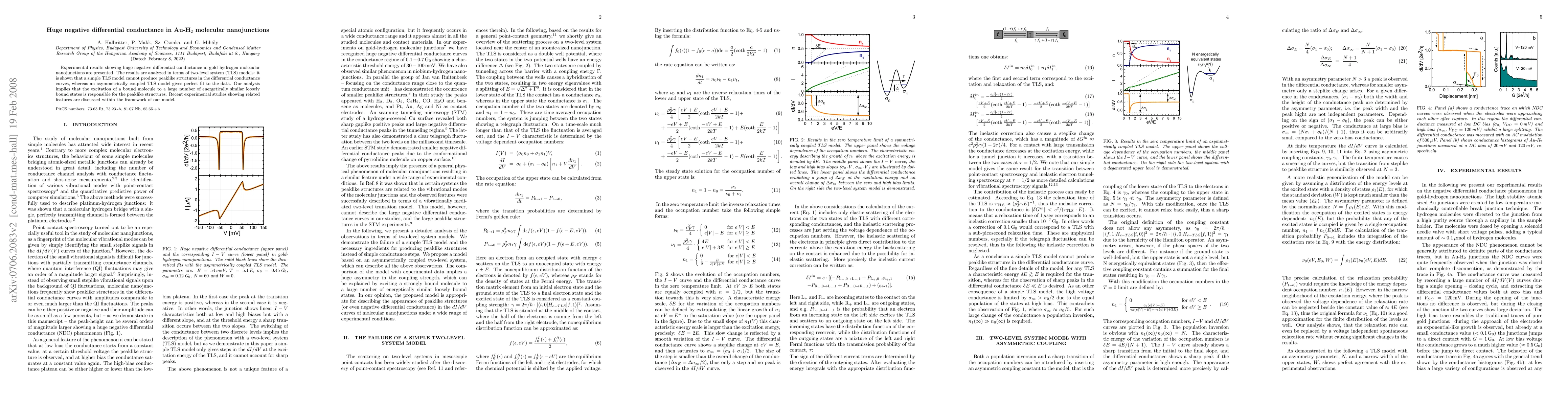 The paper introduces an asymmetrically coupled TLS model to explain the observed negative differential conductance in Au-H2 molecular nanojunctions, providing a more accurate description than a simple TLS model.