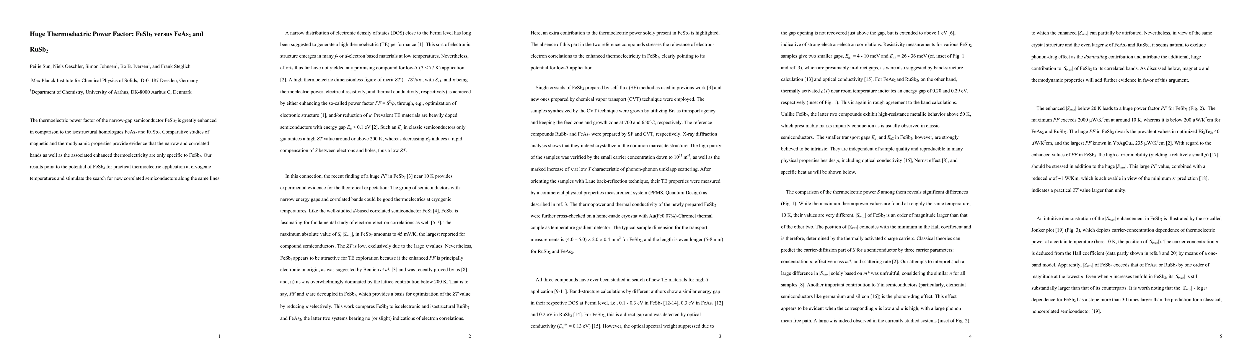 FeSb2 exhibits a significantly higher thermoelectric power factor compared to FeAs2 and RuSb2 due to its narrow and correlated bands, suggesting its potential for thermoelectric applications at cryogenic temperatures. This study highlights the unique properties of FeSb2 and encourages further exploration of correlated semiconductors.