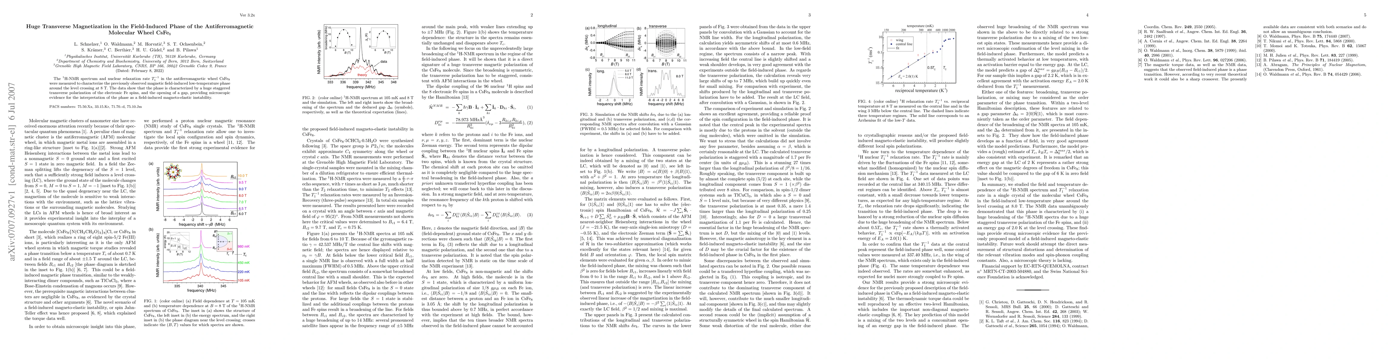 The research on CsFe8, an antiferromagnetic molecular wheel, reveals a field-induced low-temperature phase using 1H-NMR and nuclear relaxation rate 1/T_1 measurements. This phase is marked by substantial transverse polarization of Fe spins and gap formation, suggesting a magneto-elastic instability.