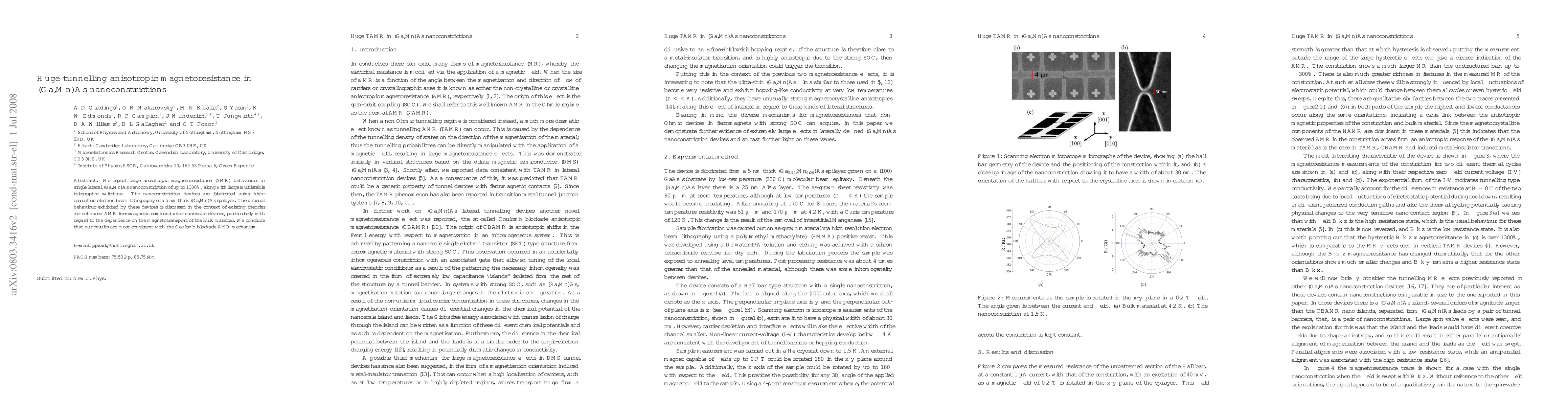 The paper presents a detailed analysis of huge tunnelling anisotropic magnetoresistance in (Ga,Mn)As nanoconstrictions, attributing the observed behavior to the Coulomb blockade AMR mechanism.