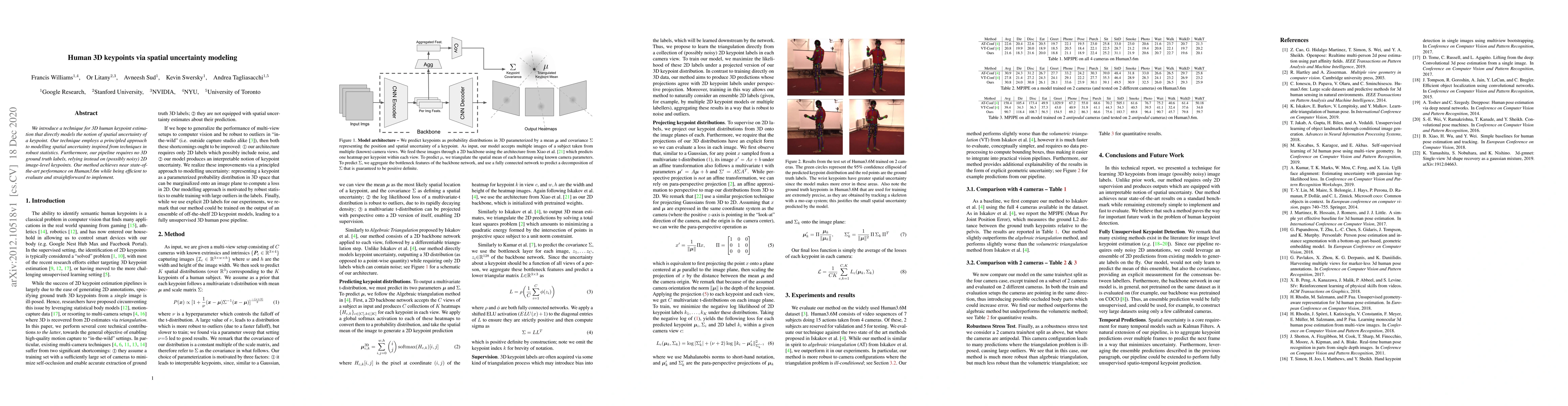 A new method for 3D human keypoint estimation models spatial uncertainty, achieving near state-of-the-art performance without requiring 3D ground truth labels.