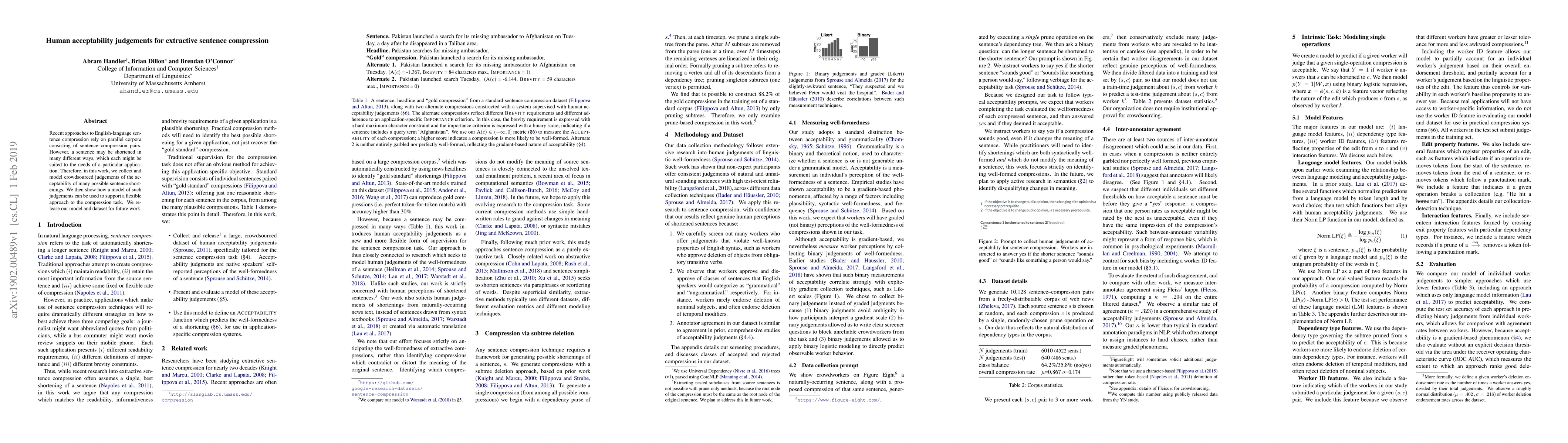 This paper collects and models crowdsourced acceptability judgements for various sentence compressions, aiming to support flexible compression approaches. It releases a model and dataset to facilitate future research in this area.