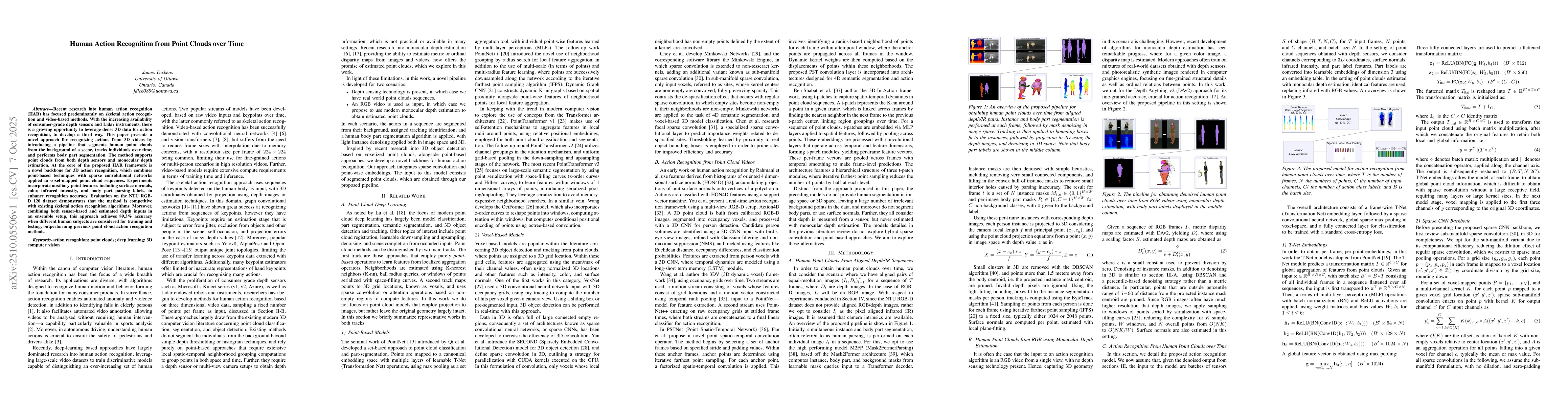 The research proposes a novel approach for human action recognition using point cloud sequences, combining body part segmentation and individual tracking with 3D depth images and monocular depth estimation. A sparse convolutional neural network backbone is developed for efficient processing of 3D point cloud data.
