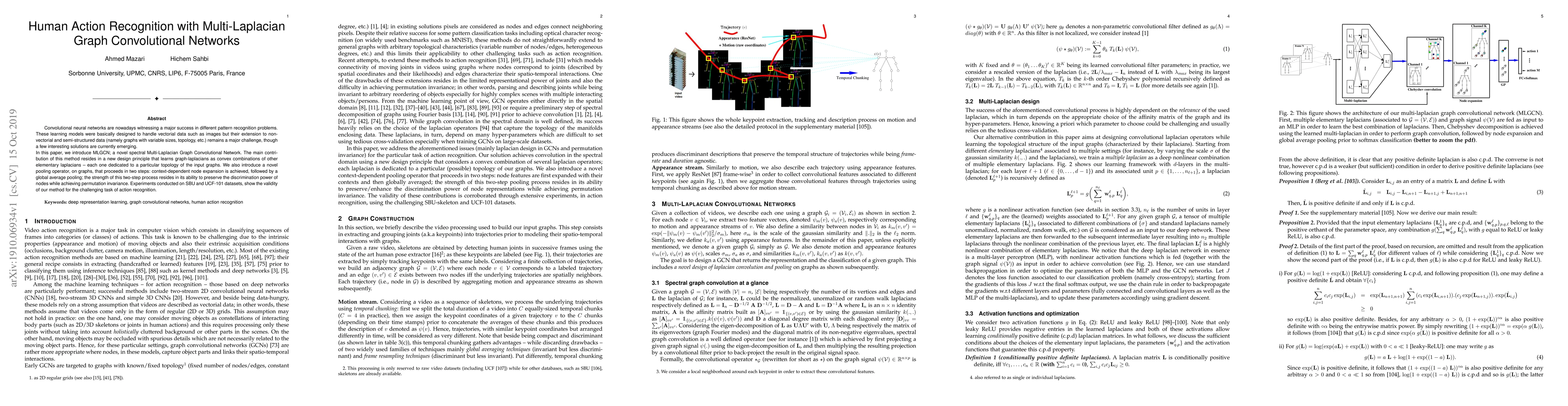 This paper introduces MLGCN, a novel Multi-Laplacian Graph Convolutional Network designed to handle non-vectorial data like graphs. It employs a new design principle to learn graph-laplacians and a two-step pooling operator to preserve node discrimination while achieving permutation invariance, demonstrating effectiveness in human action recognition on SBU and UCF-101 datasets.