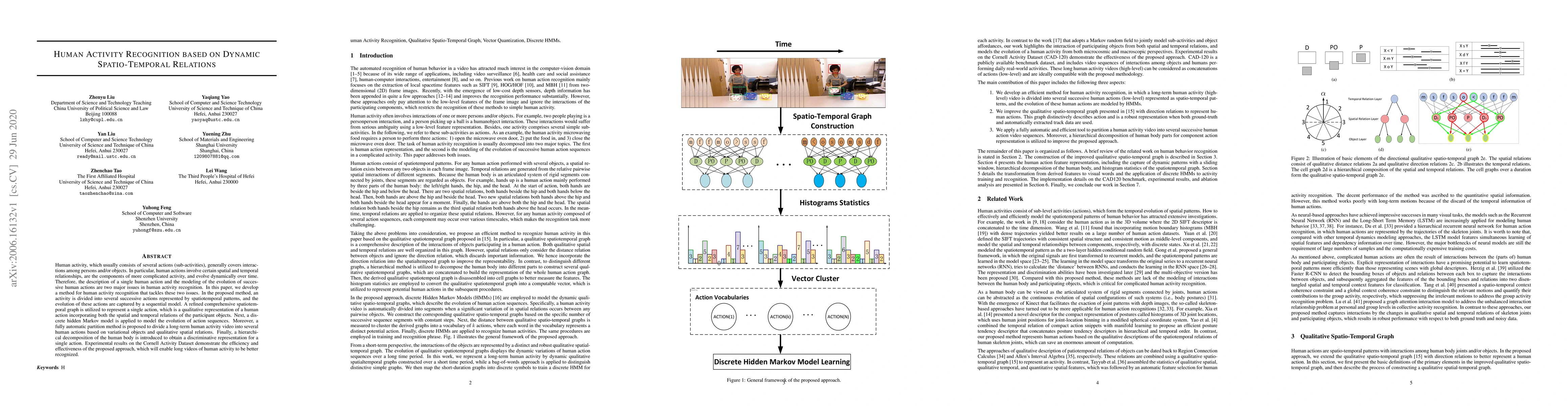 This paper proposes a method for human activity recognition that models the dynamic spatio-temporal relations of actions through a refined spatio-temporal graph and a sequential model. The method employs a discrete hidden Markov model to capture the evolution of action sequences and a hierarchical body decomposition for discriminative representation.