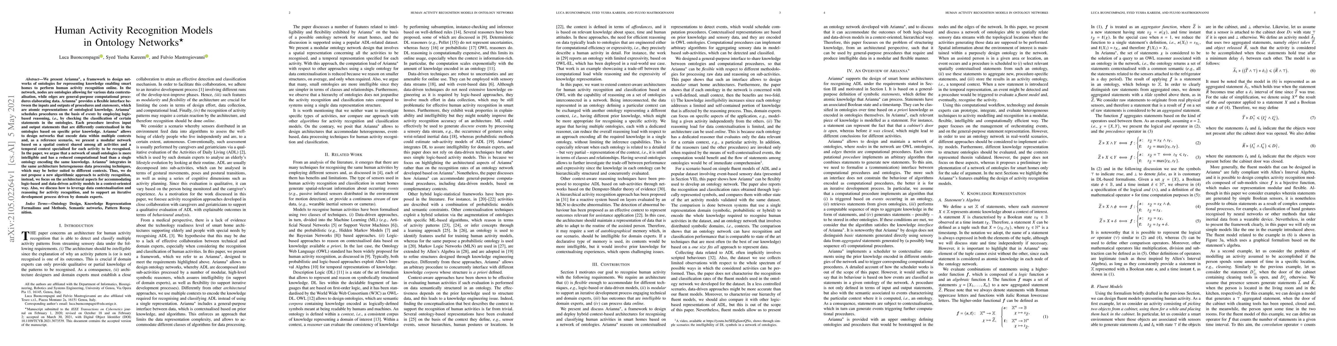 We present Arianna+, a framework to design networks of ontologies for representing knowledge enabling smart homes to perform human activity recognition online. In the network, nodes are ontologies allowing for various data contextualisation, while edges are general-purpose computational procedures elaborating data. Arianna+ provides a flexible interface between the inputs and outputs of procedures and statements, which are atomic representations of ontological knowledge. Arianna+ schedules procedures on the basis of events by employing logic-based reasoning, i.e., by checking the classification of certain statements in the ontologies. Each procedure involves input and output statements that are differently contextualised in the ontologies based on specific prior knowledge. Arianna+ allows to design networks that encode data within multiple contexts and, as a reference scenario, we present a modular network based on a spatial context shared among all activities and a temporal context specialised for each activity to be recognised. In the paper, we argue that a network of small ontologies is more intelligible and has a reduced computational load than a single ontology encoding the same knowledge. Arianna+ integrates in the same architecture heterogeneous data processing techniques, which may be better suited to different contexts. Thus, we do not propose a new algorithmic approach to activity recognition, instead, we focus on the architectural aspects for accommodating logic-based and data-driven activity models in a context-oriented way. Also, we discuss how to leverage data contextualisation and reasoning for activity recognition, and to support an iterative development process driven by domain experts.