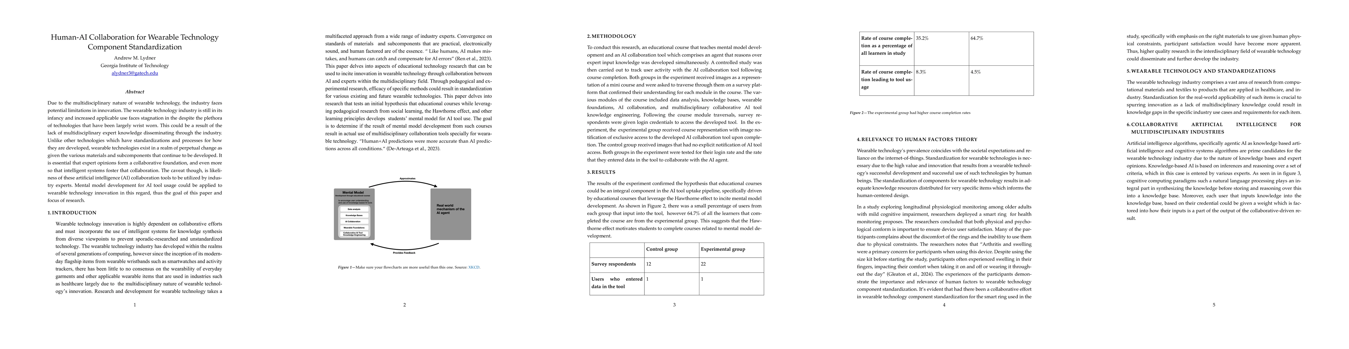 This paper explores the potential of human-AI collaboration to standardize components in wearable technology, addressing the industry's lack of multidisciplinary expertise and innovation stagnation. It aims to develop mental models for AI tool usage to enhance expert collaboration in wearable technology innovation.