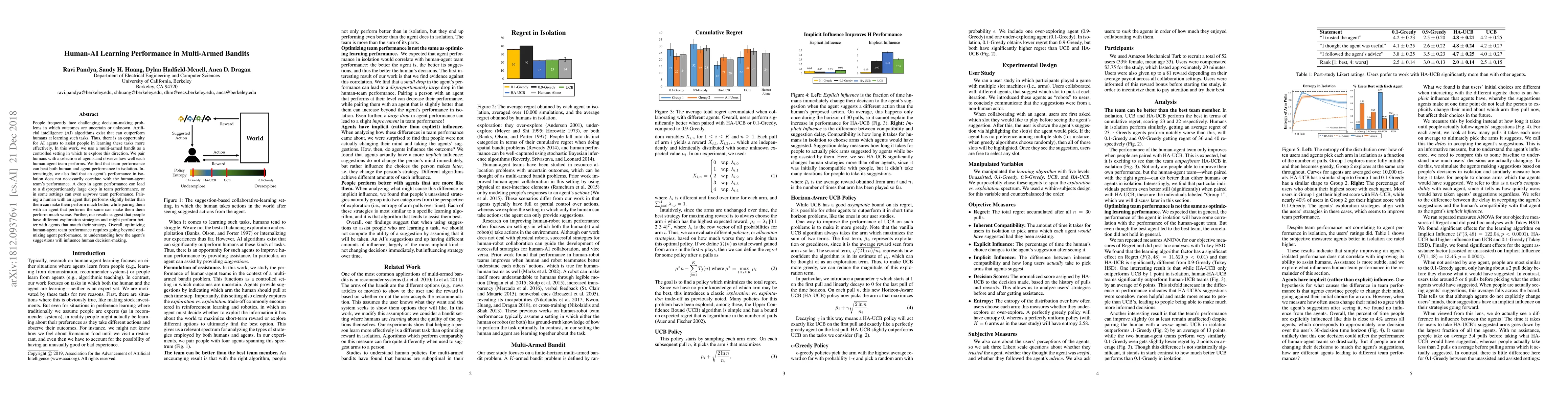 Humans paired with AI agents outperform both humans and agents alone in multi-armed bandit tasks, but team performance is influenced by agent performance and human strategy, highlighting the need for optimized human-agent teams.