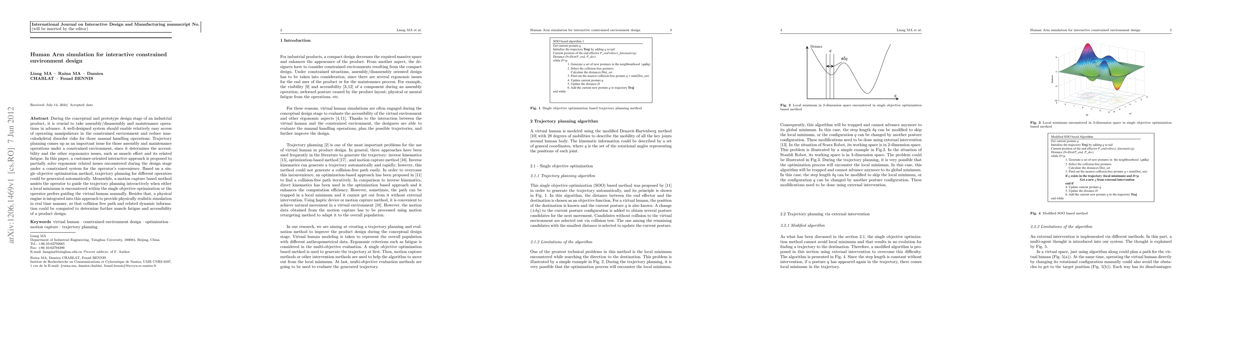 A new approach is proposed for designing interactive systems in industrial environments, using trajectory planning to optimize accessibility and reduce musculoskeletal disorders. The method combines single-objective optimization with motion capture and physical simulation for real-time feedback.