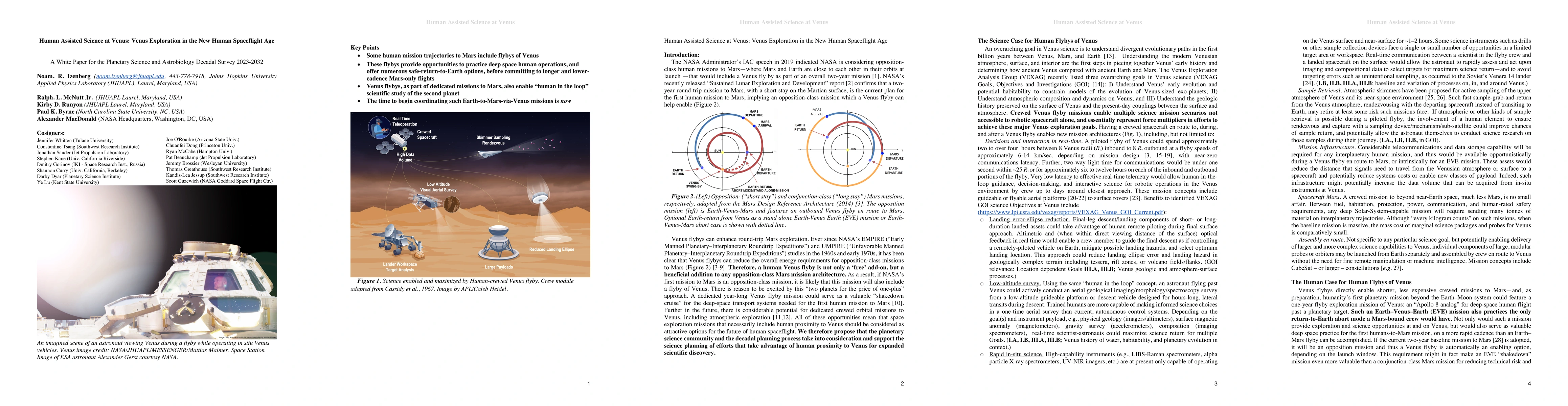 This paper explores the potential for human-assisted science at Venus as part of Mars missions, offering opportunities for scientific study and safe return to Earth.