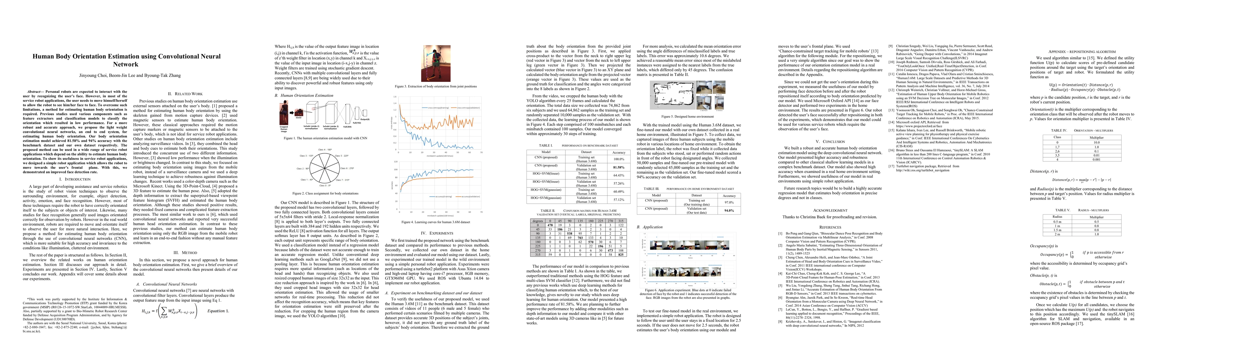 This paper proposes a lightweight convolutional neural network for estimating human body orientation to enable personal robots to interact more effectively without requiring users to face them directly. The model achieved high accuracy rates, demonstrating its potential to enhance service robot applications by improving face detection and interaction efficiency.