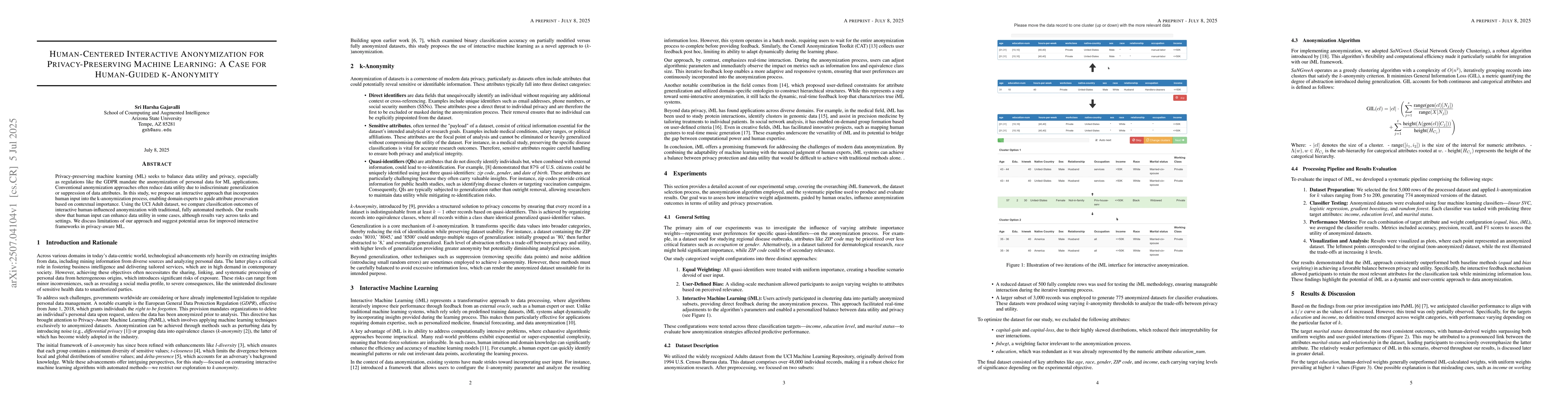 Privacy-preserving machine learning (ML) seeks to balance data utility and privacy, especially as regulations like the GDPR mandate the anonymization of personal data for ML applications. Conventional anonymization approaches often reduce data utility due to indiscriminate generalization or suppression of data attributes. In this study, we propose an interactive approach that incorporates human input into the k-anonymization process, enabling domain experts to guide attribute preservation based on contextual importance. Using the UCI Adult dataset, we compare classification outcomes of interactive human-influenced anonymization with traditional, fully automated methods. Our results show that human input can enhance data utility in some cases, although results vary across tasks and settings. We discuss limitations of our approach and suggest potential areas for improved interactive frameworks in privacy-aware ML.