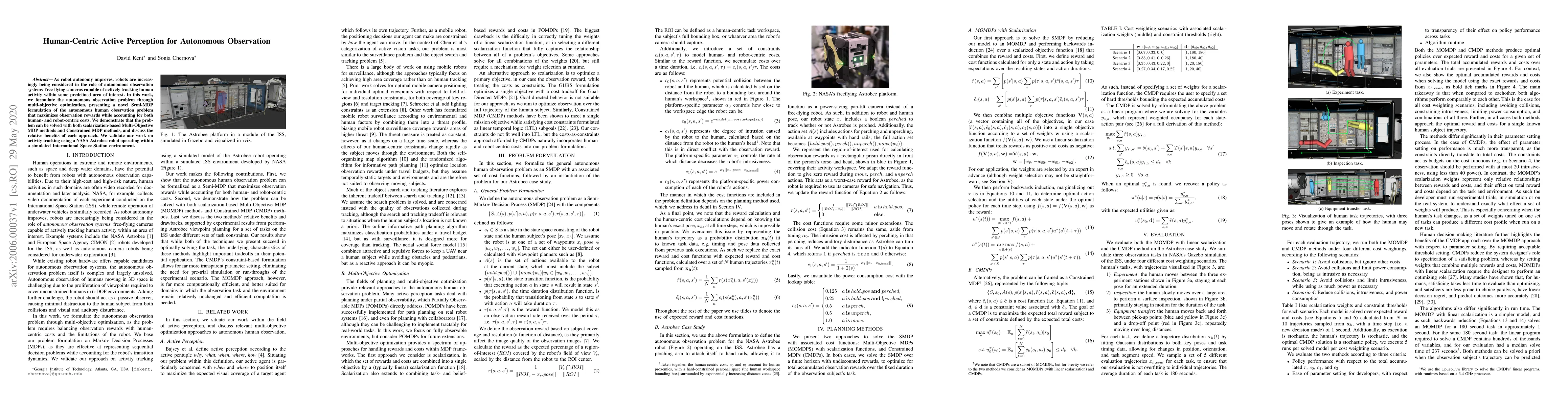 Researchers developed a new approach to autonomous observation using robots with active tracking capabilities, balancing human-centric rewards with robot-centric costs. The method uses multi-objective optimization techniques to track human activity in predefined areas.