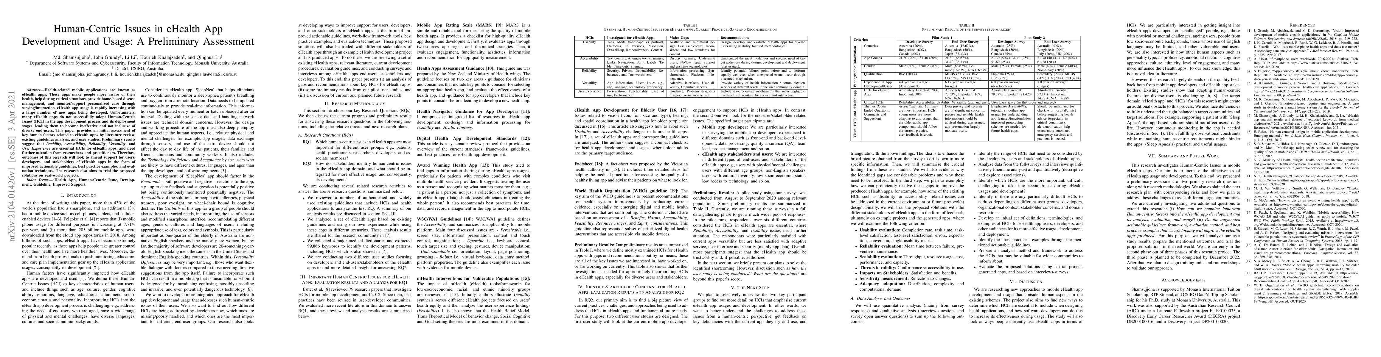 This paper assesses human-centric issues in eHealth app development, highlighting the importance of usability, accessibility, reliability, versatility, and user experience. Preliminary findings suggest these factors need more attention to improve app effectiveness and inclusivity.
