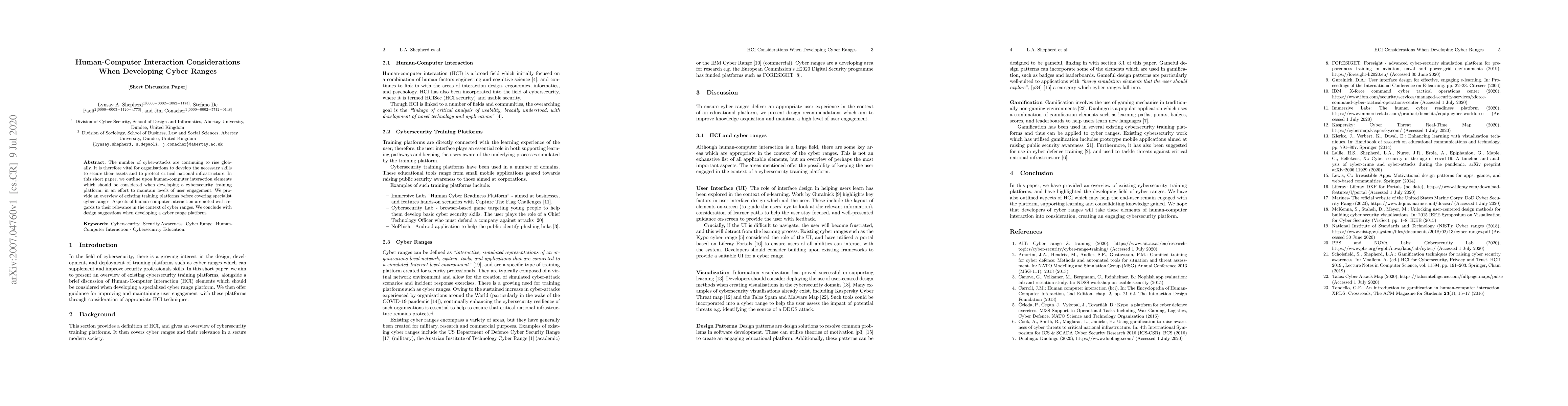 This paper explores human-computer interaction considerations for developing effective cybersecurity training platforms, emphasizing user engagement. It reviews existing training tools and specialist cyber ranges, concluding with design recommendations for enhancing user interaction in cyber range environments.
