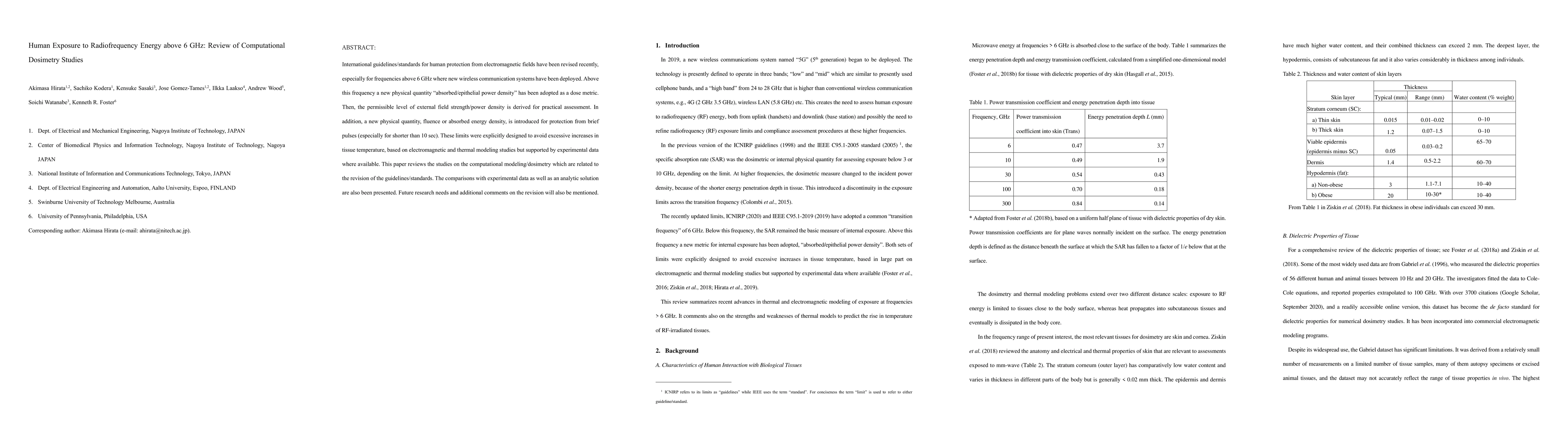 This review paper examines the computational dosimetry studies for human exposure to radiofrequency energy above 6 GHz, focusing on the revision of international guidelines and standards. The study highlights key findings, methodology, and implications for future research in protecting humans from excessive increases in tissue temperature.