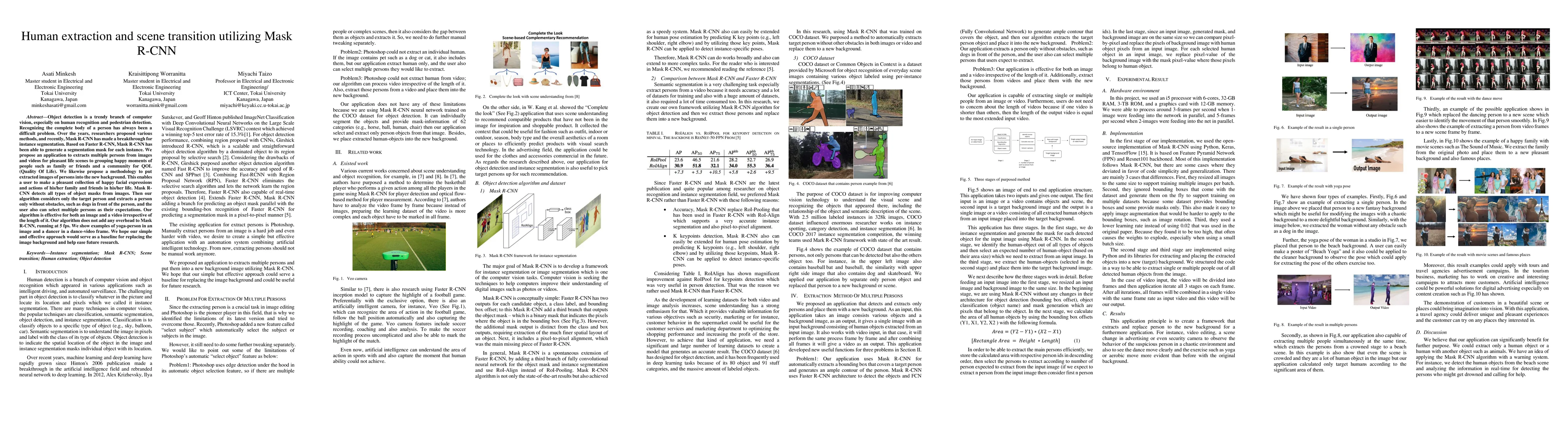 This paper proposes an application using Mask R-CNN to extract multiple individuals from images and videos, facilitating the replacement of backgrounds to create collections of happy moments. The algorithm efficiently extracts persons without obstacles and runs at 5 fps without adding overhead to Mask R-CNN.